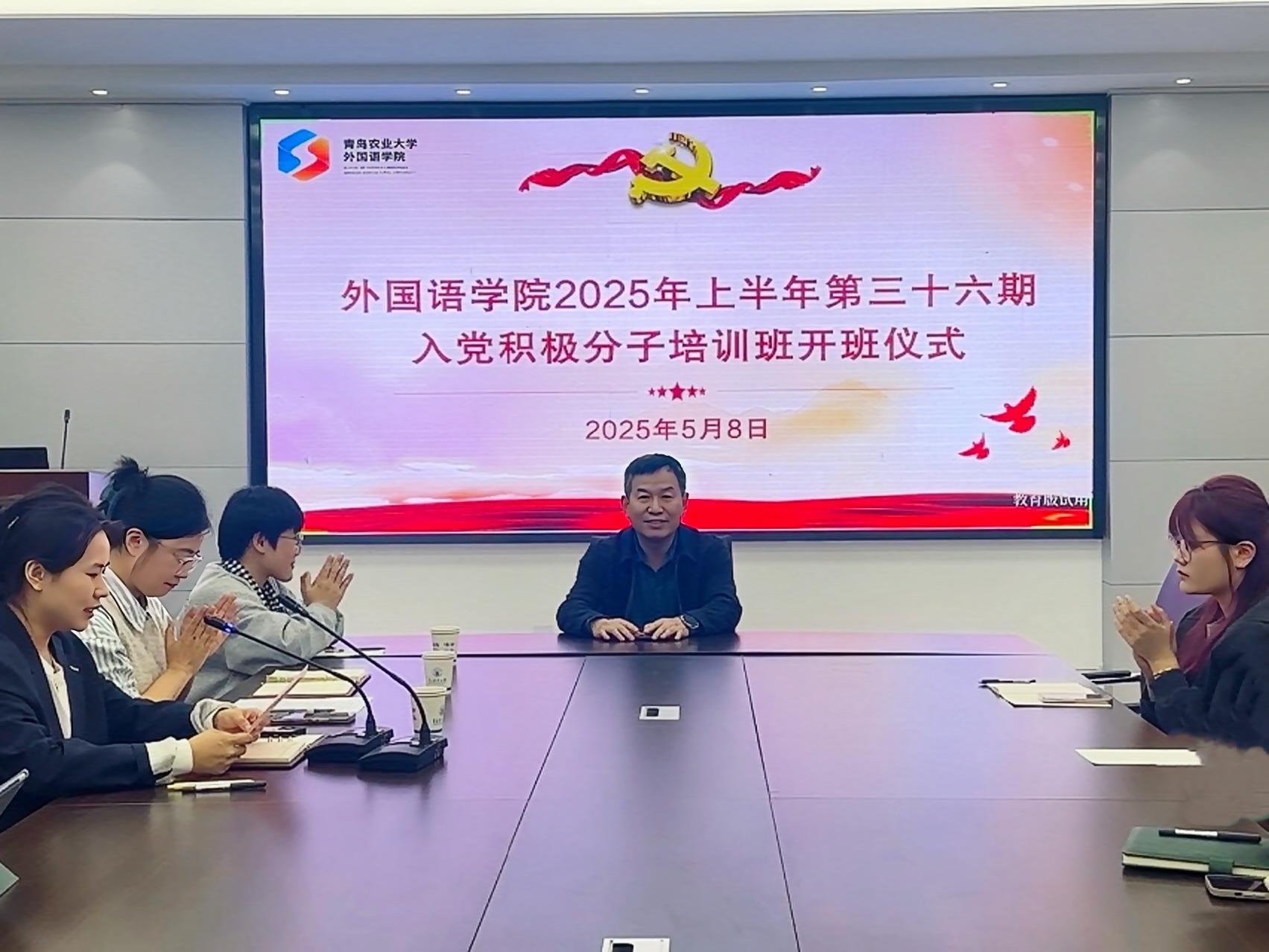 5月8日,外国语学院分别于城阳校区文经楼C220会议室和平度校区博学楼D104举行第三十六期入党积极分子培训班开班仪式。学院党委书记王效仿出席开班仪式并讲授主题党课,学院团委书记线郁、学院全体入党积极分子参加,开班仪式由学院辅导员仇文峰主持。