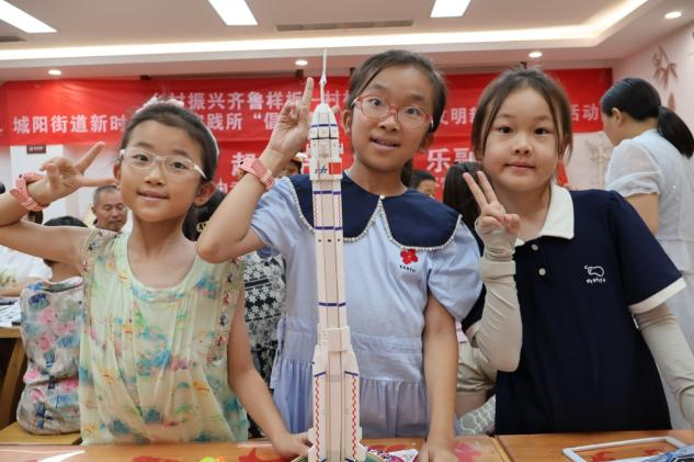载人航天精神是中国共产党人精神谱系的重要组成部分,其核心内涵是“特别能吃苦、特别能战斗、特别能攻关、特别能奉献”,是中国航天人在攀登科技高峰中凝聚的宝贵精神财富。社会实践团队充分融合了知识科普、语言教学、情景模拟、互动问答等多种形式,让小朋友们在趣味中学习航天知识、感悟载人航天精神。活动还设置了创意绘画、火箭与“天宫二号”模型组装等动手环节,让小朋友们通过亲身体验感受航天科技的魅力。在创意绘画环节,孩子们用五彩斑斓的画笔描绘出自己心中的宇宙和飞船,激发了他们对太空探索的无限想象。火箭与“天宫二号”模型组装则让小朋友们了解航天器的基本构造,在动手操作中培养了他们的逻辑思维能力和团队协作意识。这些活动不仅增强了趣味性,也让载人航天精神以更生动的方式深植于孩子们的心中。