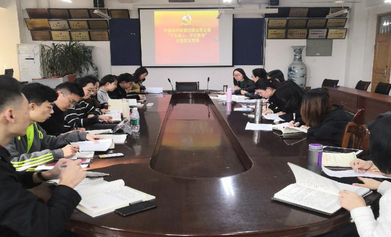 10月29日,sunbet申搏官方网站外国语学院第四、第五党支部于会议室举行“不忘初心,牢记使命”主题教育党课,第四、第五党支部全体党员与会。