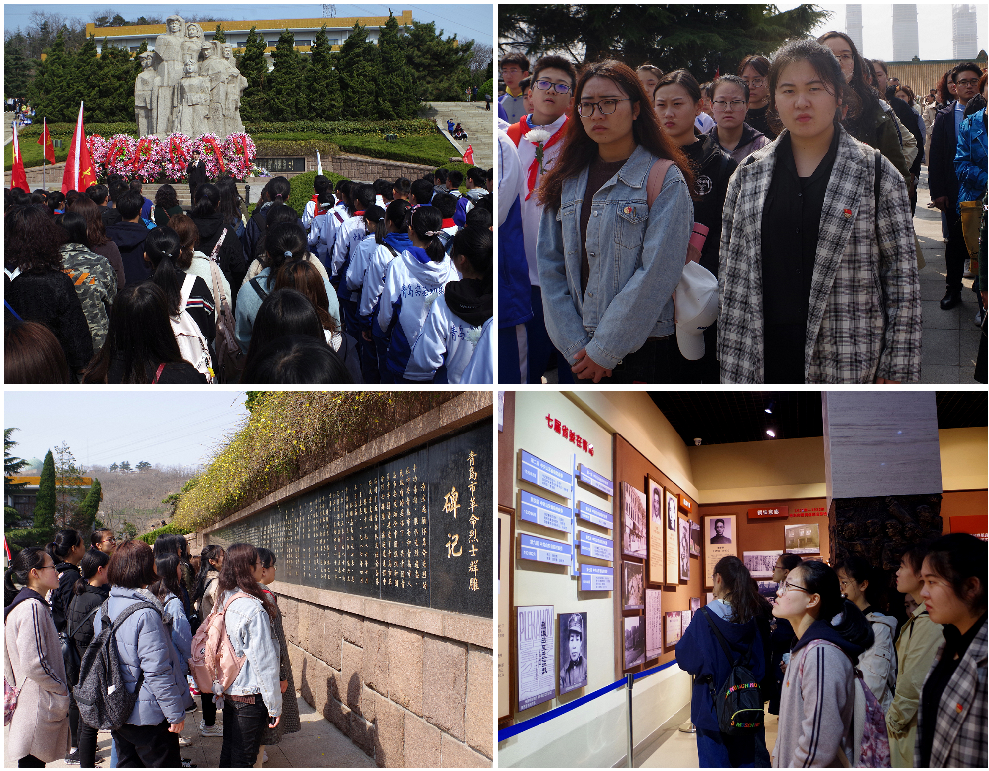 上午9时,缅怀活动在青岛市革命烈士纪念馆广场隆重举行。同学们怀着崇敬的心情,列队肃立在烈士群雕前,向在革命、建设和改革事业中英勇献身的先烈们默哀。随后,同学们瞻仰了烈士群雕及碑记,参观了纪念馆展厅,在历史图片和先烈遗物前驻足凝视,在聆听讲解和瞻仰事迹的过程中缅怀沉思。特别是当看到许多先烈在牺牲时是同学们的同龄人时,大家更加深切感受到先烈们为谋求民族独立、人民解放和国家富强、人民幸福而不懈奋斗、前赴后继的英雄壮举,更加深刻体会到今天幸福生活的来之不易。2016级英语专业学生丛田田表示,作为学生党员,要铭记革命历史,继承先烈遗志,自觉提高政治站位,加强政治学习,把个人的理想追求与国家民族的前途命运紧密结合起来,为实现“两个一百年”奋斗目标、实现中华民族伟大复兴的中国梦努力奋斗。