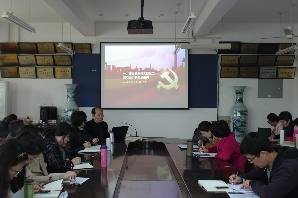 4月4日,外国语学院组织全体教职工开展政治理论学习活动。学院党委书记为全体教职工做了题为《用马克思主义理论指导高校育人实践》的辅导报告。