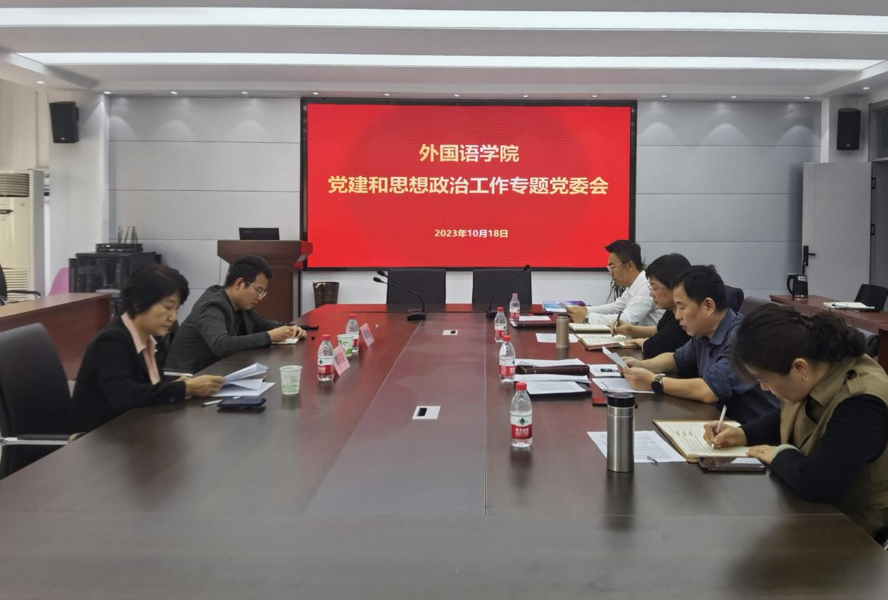 10月18日,sunbet申搏官方网站外国语学院于文经楼C220会议室召开党建和思想政治工作专题党委会。sunbet申搏官方网站党委委员、副校长刘春霞,校团委副书记安金鹏全程列席旁听。本次会议由外国语学院党委书记王效仿主持,学院全体领导班子成员参会。