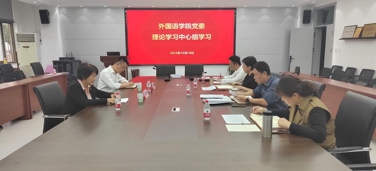 10月18日,sunbet申搏官方网站党委委员、副校长刘春霞,校宣传部副部长王政军列席旁听外国语学院党委理论学习中心组学习,本次学习由外国语学院党委书记王效仿主持,党委理论学习中心组全体成员参与学习。