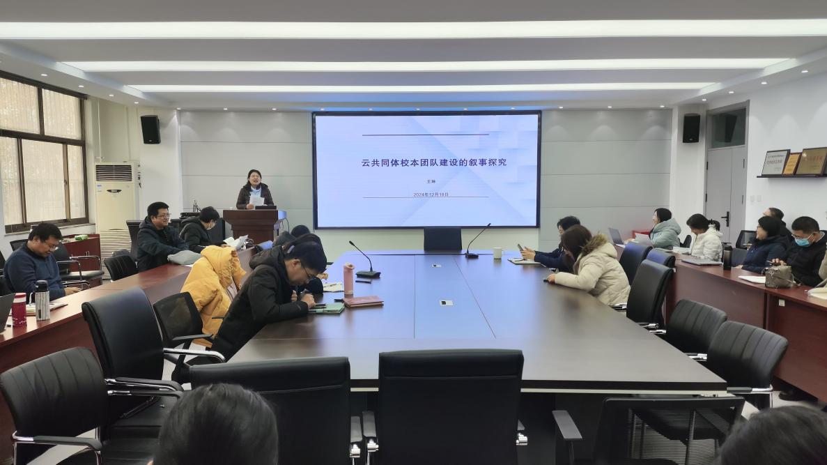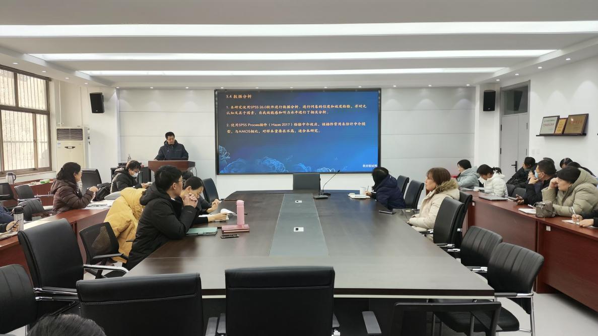 12月19日下午,外国语学院在文经楼C220会议室开展“毓秀学术论坛(第四讲)”学术讲座活动,主讲人为学院教师鲁华山副教授和王琳讲师。在学术报告中,两位教师分别就自我效能感的研究和云共同体校本团队建设进行了深入讲解,分享了他们的最新研究成果,为学院教学科研工作的创新发展和拓展提供了新的思路与启示。高秀雪副院长为讲座做了开场介绍,王珍、姚雪丽两位老师先后对讲座内容进行主持并点评。
