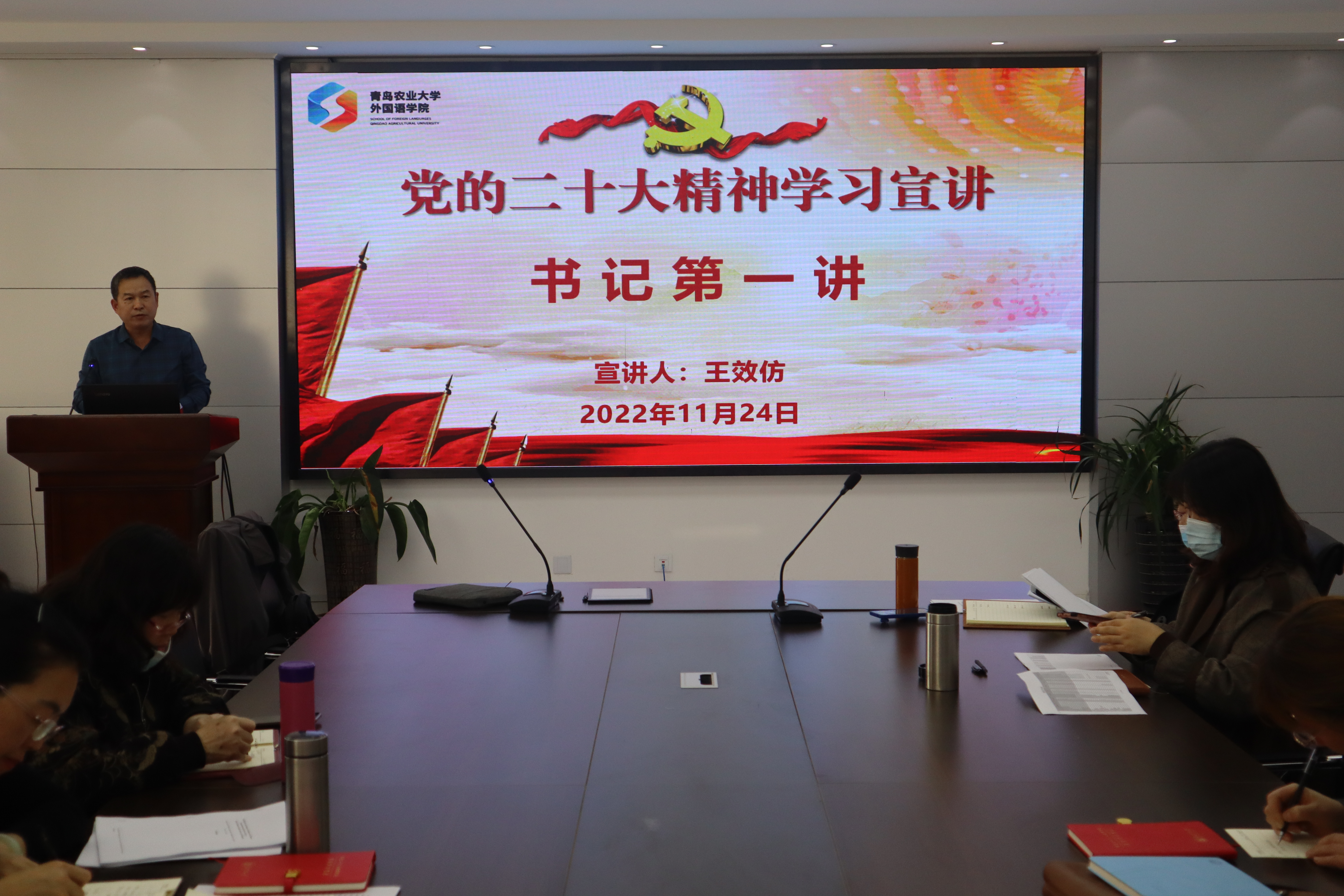 11月24日,sunbet申搏官方网站外国语学院于文经楼C220会议室召开学习宣传贯彻党的二十大精神宣讲会。本次宣讲会由外国语学院党委书记王效仿主讲,学院全体教职工参加。