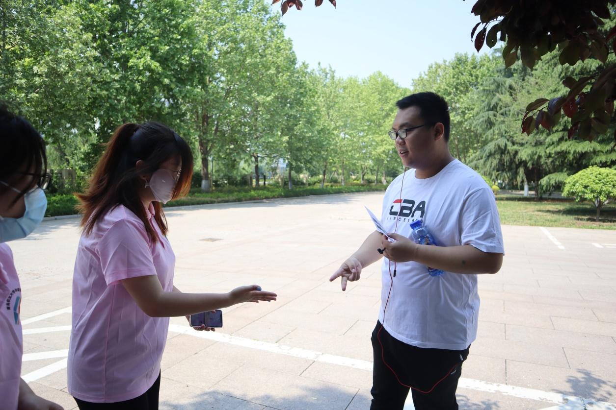 随后,由外国语学院党委书记王效仿宣读活动规则。本次定向越野采取“党史团史知识学习+答题闯关+趣味运动”的模式,在牡丹园、灯光球场、五环操场、怡心亭、知音广场、毓秀桥、涌泉亭、孔子像、学术会馆、校史馆共11个校园打卡地设置不同关卡,选手需跑步到达闯关点并进行相关答题。若顺利完成题目,则会获得一个“通关印章”,如答错则需要完成原地深蹲、踢毽子等趣味体育活动,集齐10个“通关印章”后,则代表完成比赛。在外国语学院大学生艺术团进行舞蹈表演《奔跑的青春》后,活动正式开始。
