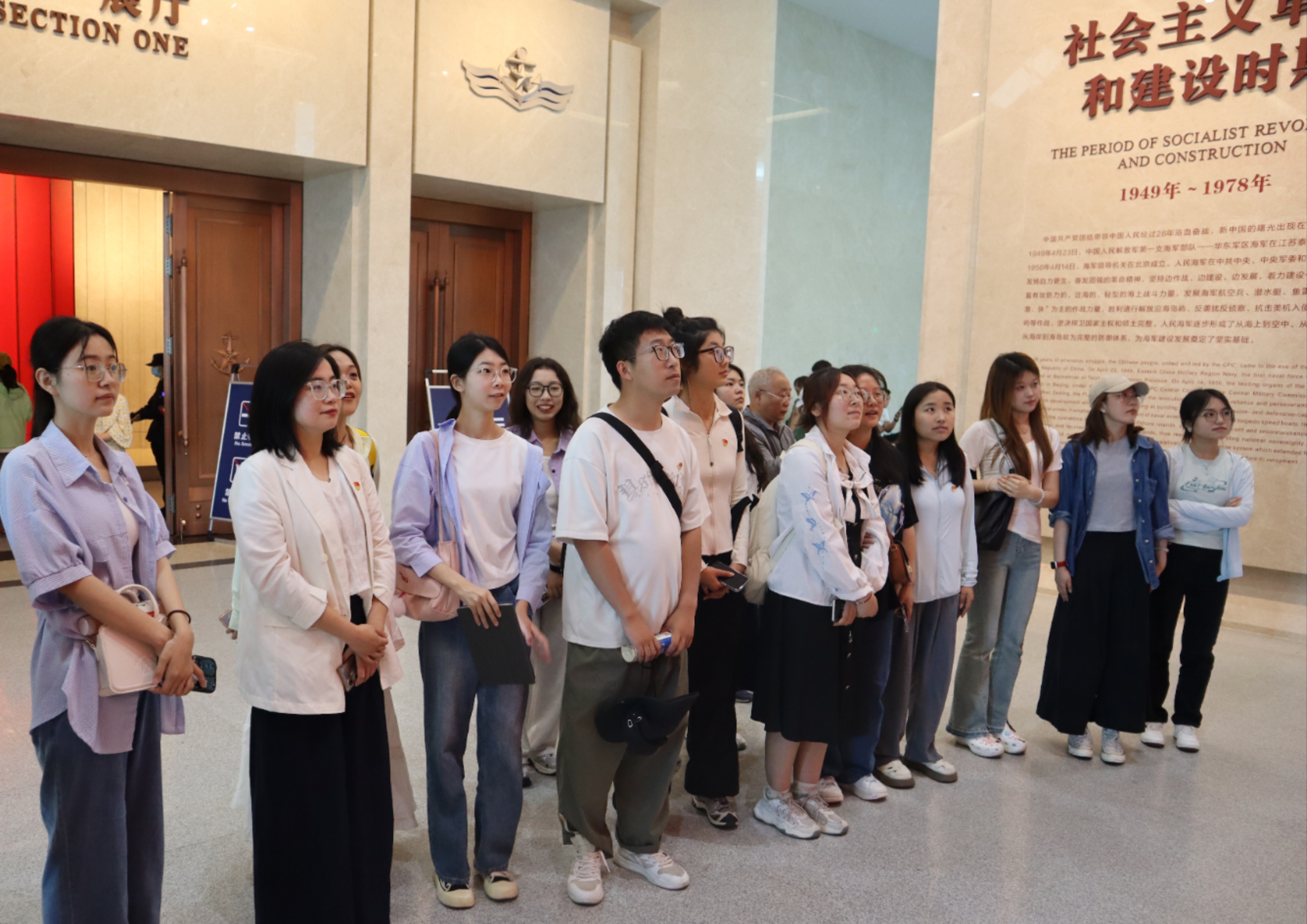 为了提高学生党员及学生干部的思想素质,提升社会责任感和使命感,6月1日,sunbet申搏官方网站外国语学院第三党支部组织开展“致敬海疆英雄,追寻红色基因”主题党日活动,组织参观中国人民解放军海军博物馆和青岛党史纪念馆,活动由学院团委书记线郁带队。