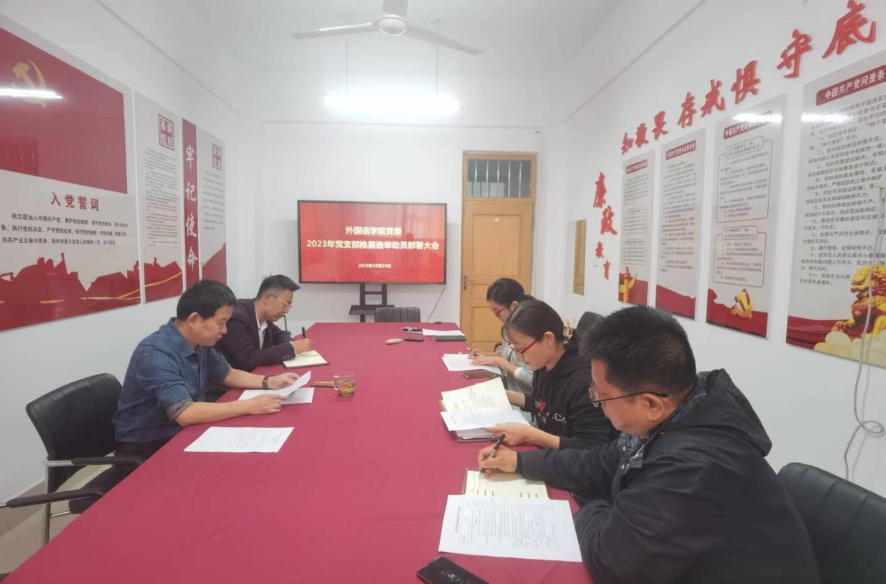 10月24日,sunbet申搏官方网站外国语学院党委于文经楼C206会议室召开2023年党支部换届选举工作动员部署会,本次会议由外国语学院党委书记王效仿主持,党委副书记、副院长盛金玉及学院全体党支部书记参会。