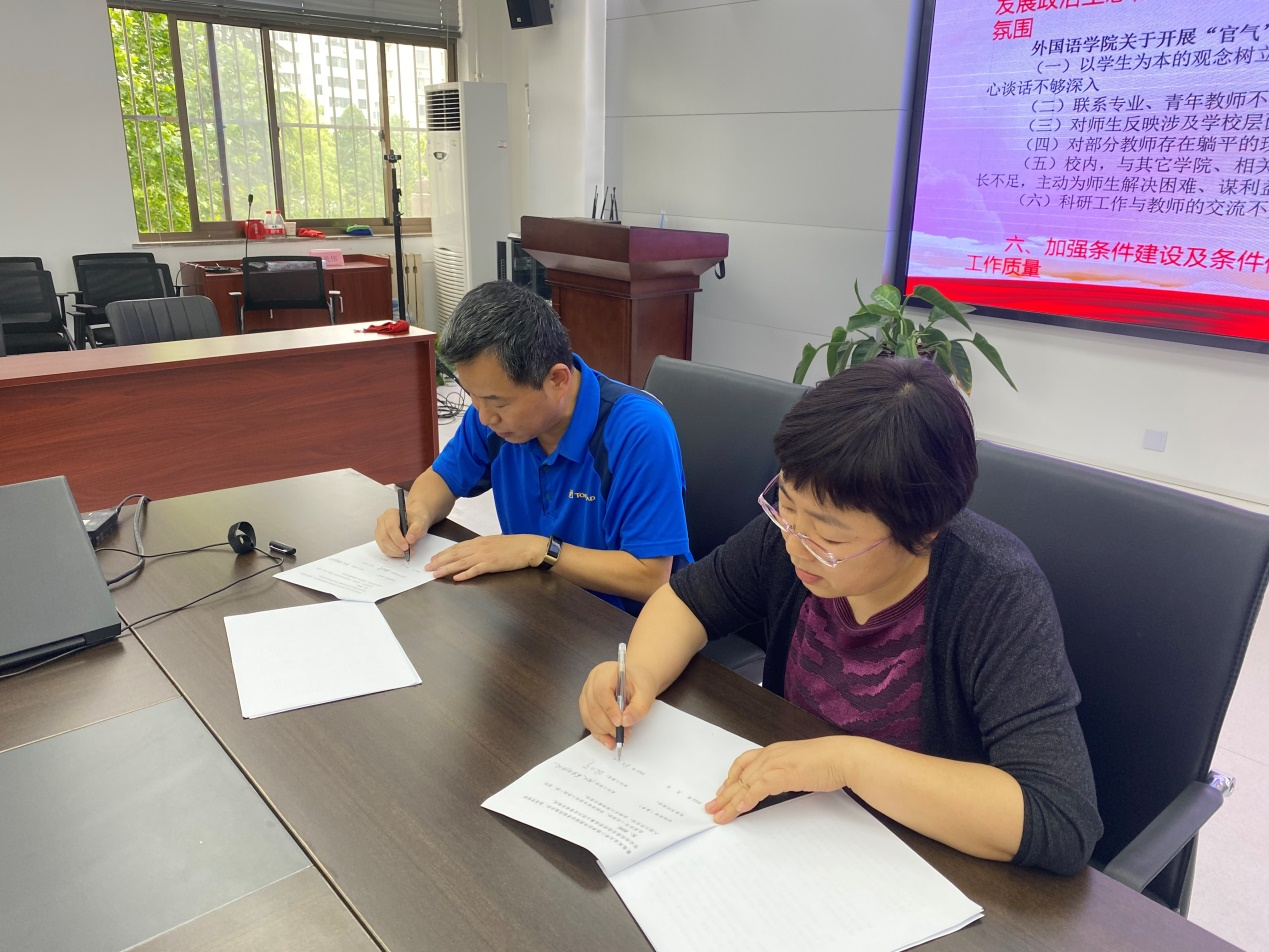 会后,王效仿带领大家集体学习了《党员干部廉洁自律提示卡》,并与学院处科级干部集体签订党风廉政建设责任书。