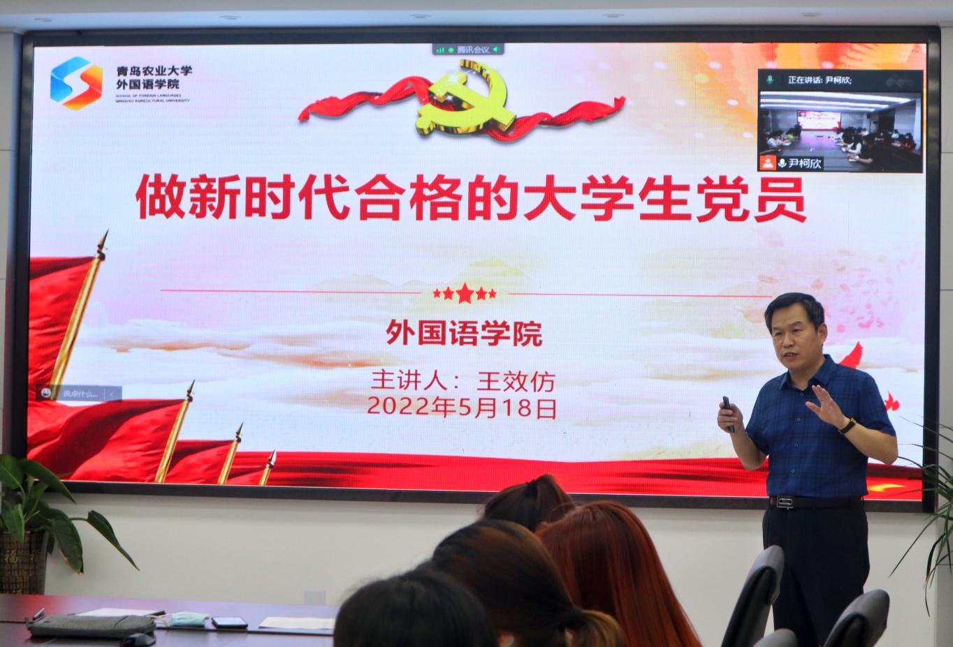5月18日晚,sunbet申搏官方网站外国语学院第三十期入党积极分子和2022年上半年党员发展对象培训班开班仪式于文经楼C220会议室举行。本次开班仪式利用腾讯会议以线上线下相结合的方式开展,学院党委书记王效仿以“做新时代合格大学生党员”为题,为本期党员发展对象和入党积极分子讲党课。学院第三党支部书记线郁参加会议,辅导员仇文峰主持会议。