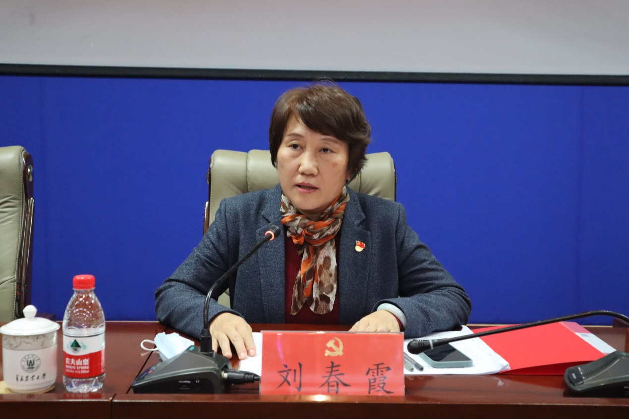 刘春霞副校长发表致辞。她指出,外国语学院委员会换届选举党员大会对于贯彻党的二十大精神、凝聚全院力量、推动外国语学院高质量发展具有极其重要的意义,并对大会圆满成功表示祝贺。刘春霞提出五点要求:一是要进一步加强领导班子建设,不断提高带头落实“一岗双责”的能力和水平。二是要进一步强化理论武装,组织和带领全院师生员工切实把思想和行动统一到党的二十大精神上来。三是要进一步强化责任担当,积极营造风清气正、主动作为的干事创业氛围。四是要坚持“围绕中心抓党建、抓好党建促发展”的工作思路,进一步加强学科建设。五是要进一步加强作风建设,统筹疫情防控、舆情管控、学院发展和安全稳定工作。
