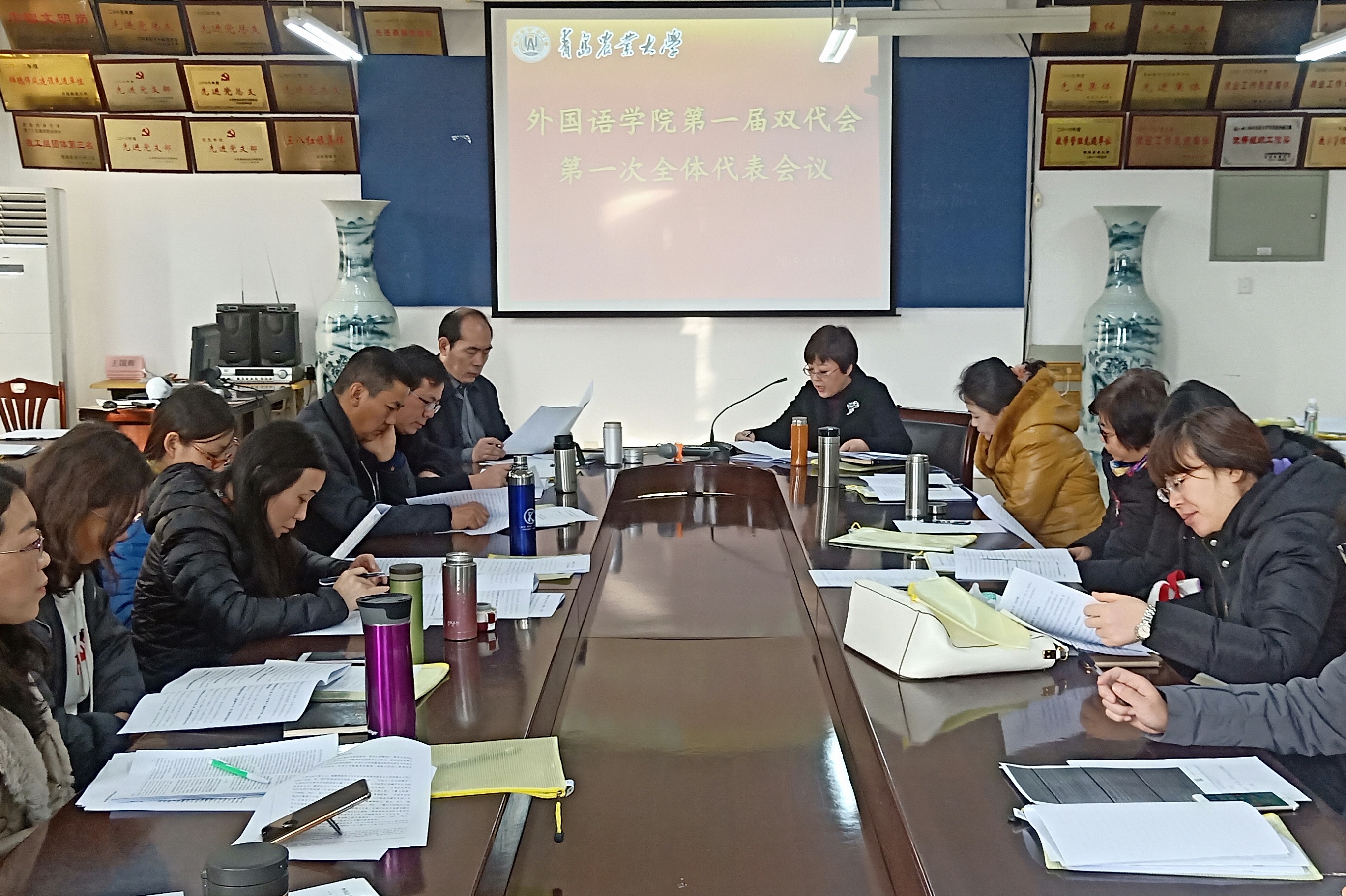 1月15日,sunbet申搏官方网站外国语学院第一届教职工暨工会代表大会第一次全体会议在文经楼会议室隆重召开。学院党政领导出席会议,全体教职工代表和工会代表与会。会议由学院党委书记王仁高主持。
