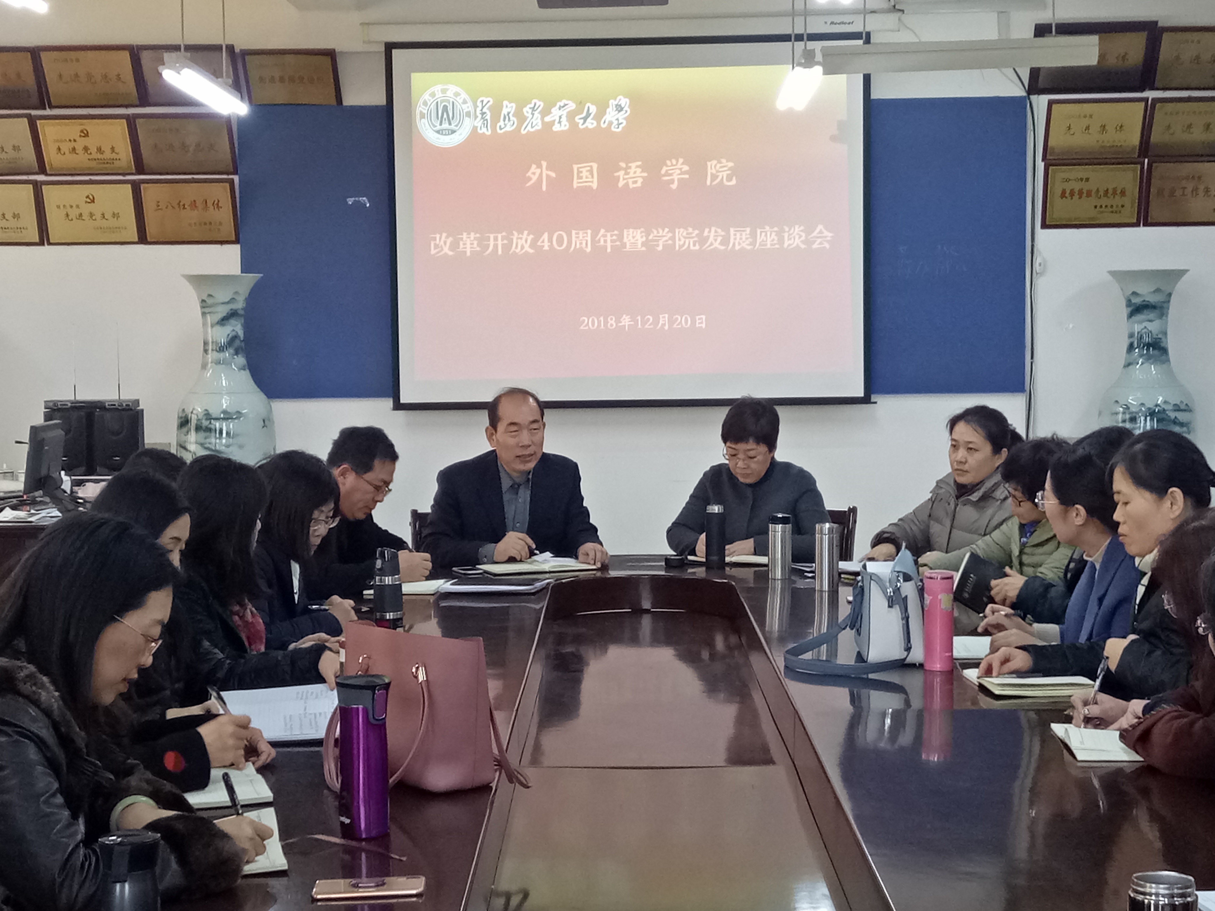 座谈会气氛热烈,与会教职工围绕改革开放40周年及学院发展历史畅谈所历所思,总结学院近20年的发展经验和优良传统,并展望未来愿景。大家谈到,今天的外国语学院,受益于改革开放的好时代,从一支服务于莱阳农学院英语基础教学的教师队伍,逐步发展壮大,于1999年成立外国语学院,历经20年的发展,目前已成为师资结构较为合理、教学科研水平较高的二级学院。多年来,学院紧跟改革开放时代步伐,积极进行教学科研上的改革创新,大力支持与鼓励教师继续深造,不断为师生创造出国留学的机会,先后与美国、澳大利亚、日本、韩国等10多所高校和科研机构建立了合作交流关系。多位留学归来的教师,全身心投入到学院教学科研工作中,推动了学院事业发展。近年来,学院教师在SSCI、CSSCI等高水平学术期刊上发表了多篇论文,在各级各类教学比赛中屡获佳绩,学生也在各级各类外语类竞赛中捷报频传,学院教学科研水平有了很大跃升。老教师代表王竹青感慨道:“外国语学院近20年来发展很快,变化也很大。我们的师资队伍越来越强,学科建设更加完善,科研项目也越来越多。我们正在大踏步地前进,与建院初期相比较,现在取得的成绩着实令人欣喜。这既离不开多年来外院全体教职工的团结奋斗,更得益于改革开放的伟大时代。”