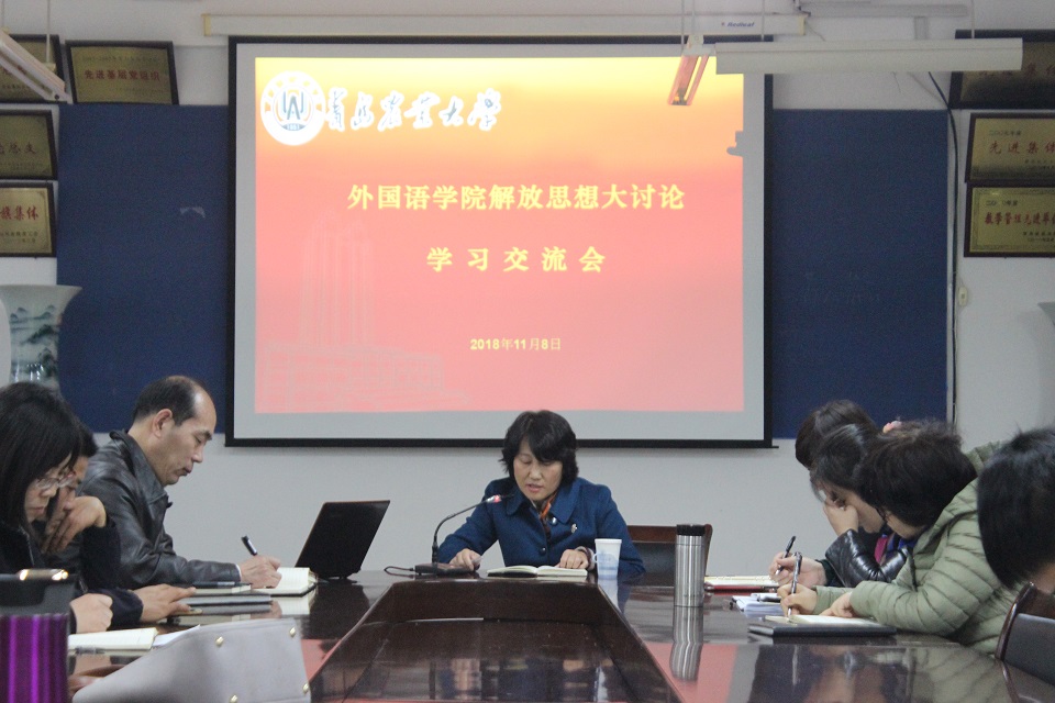 11月8日,sunbet申搏官方网站外国语学院在文经楼会议室召开解放思想大讨论学习交流会。副校长刘春霞、学院领导王仁高、纪卫宁、王晓雷、李春梅、高秀雪出席,全体教职工参加。会议由院党委书记王仁高主持。