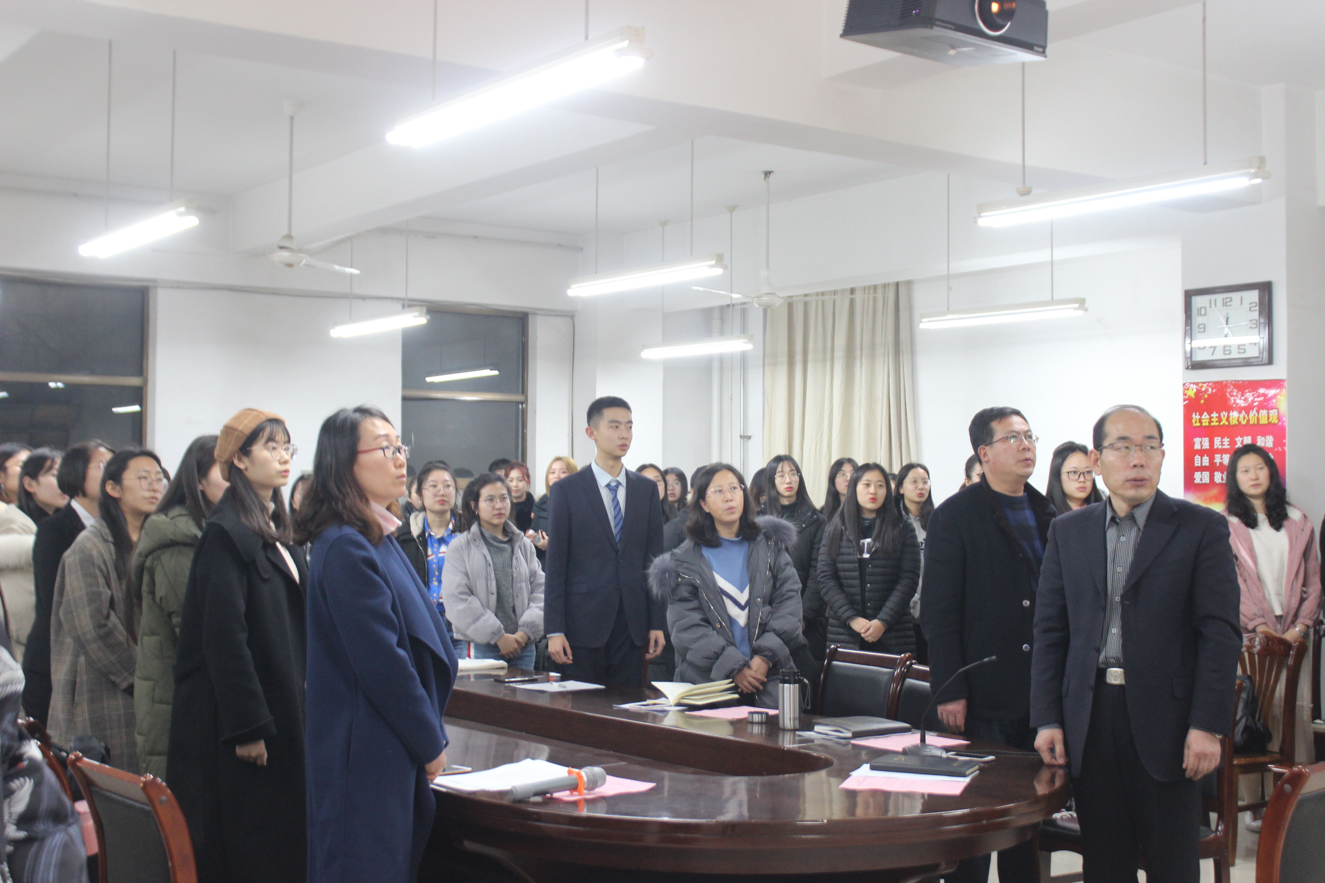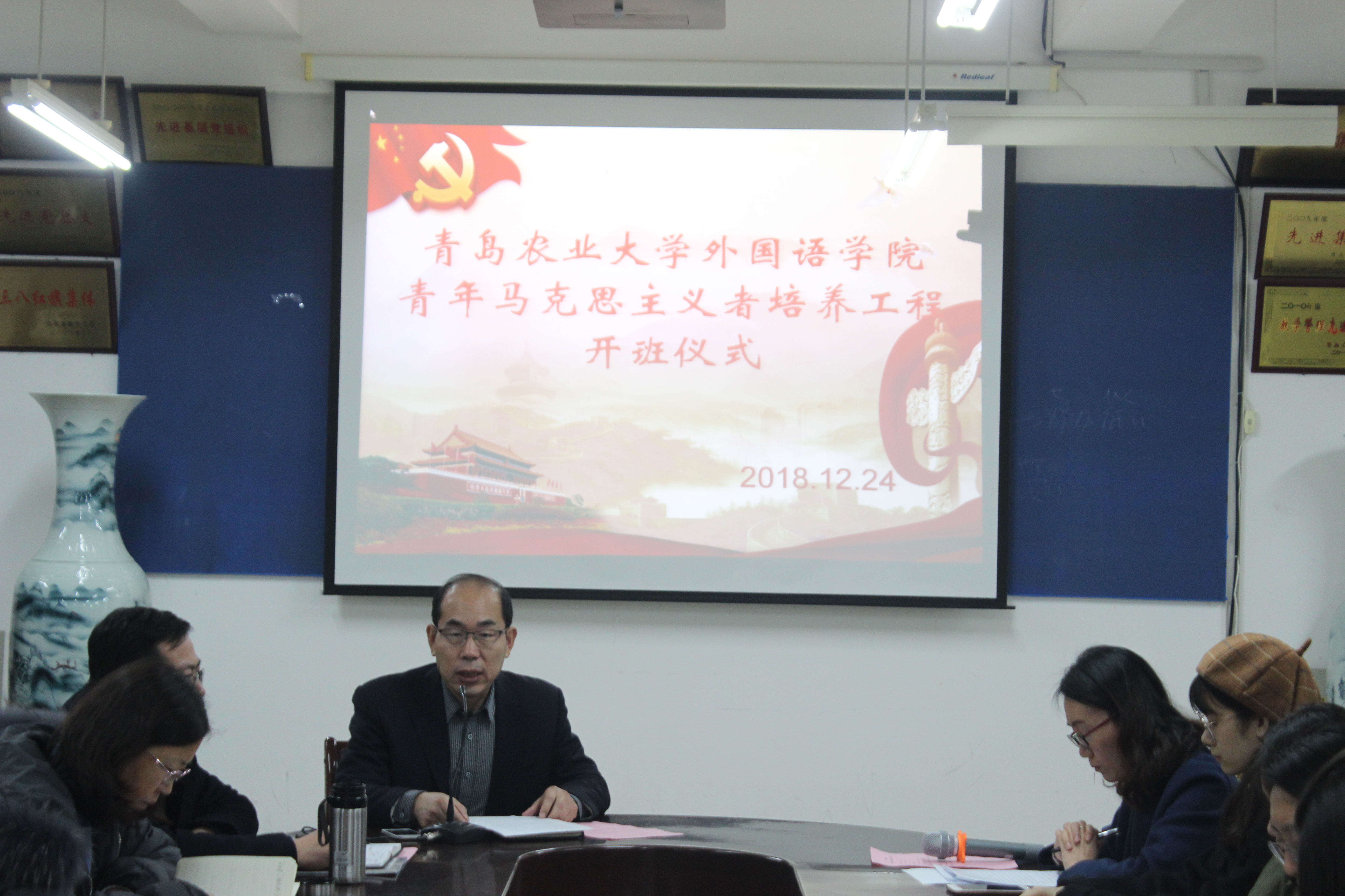12月24日,sunbet申搏官方网站外国语学院于文经楼会议室举办青年马克思主义者培养工程(以下简称“青马工程”)培训班开班仪式。学院党委书记王仁高、党委副书记王晓雷、团委书记嵇安奕、正科级辅导员刘艳出席,学生党员、学生会主席团成员、学生会各部部长及副部长、18级班长书记参加。开班仪式由嵇安奕主持。