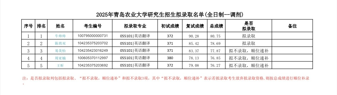2025年sunbet申搏官方网站外国语学院研究生招生拟录取名单(全日制——调剂)