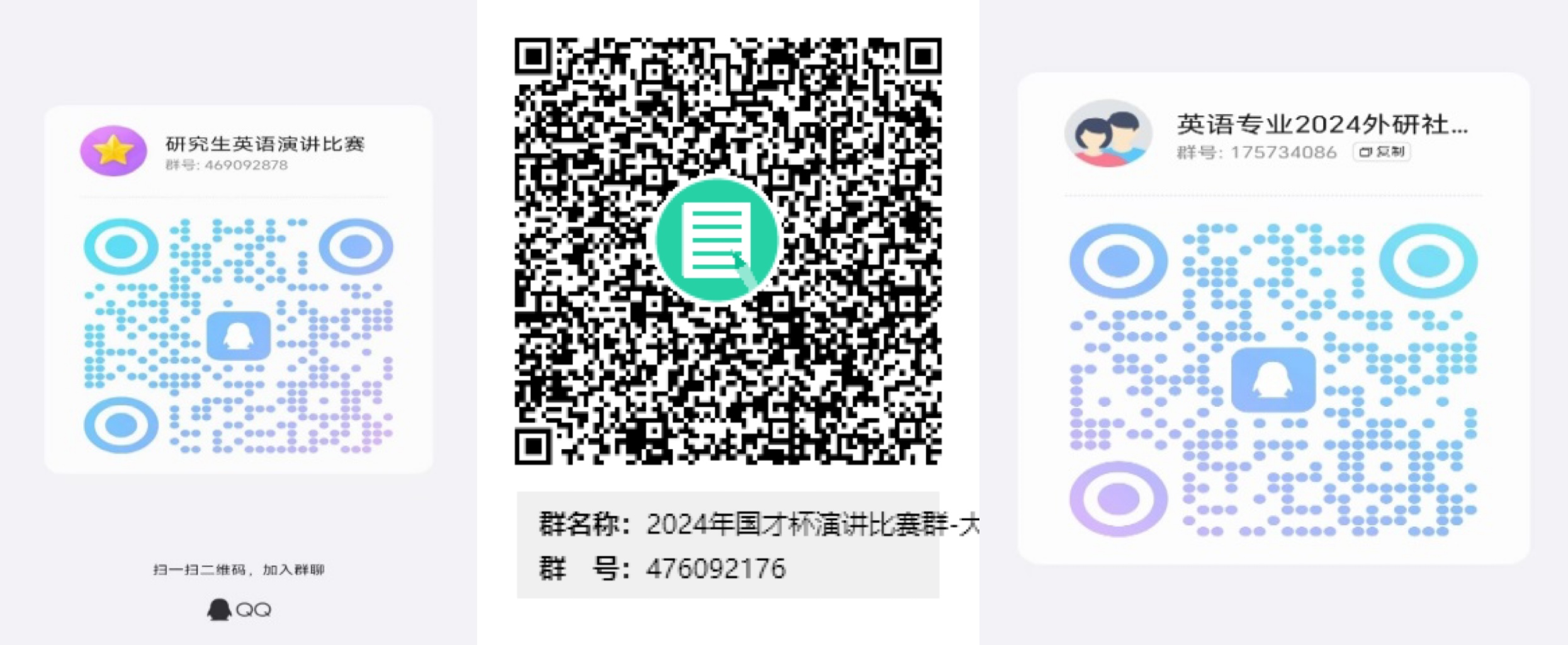 大学英语组演讲大赛QQ群号为476092176。