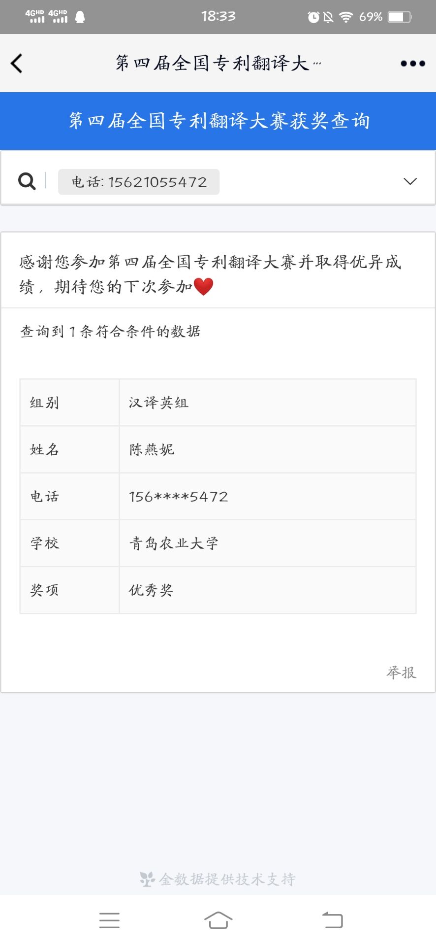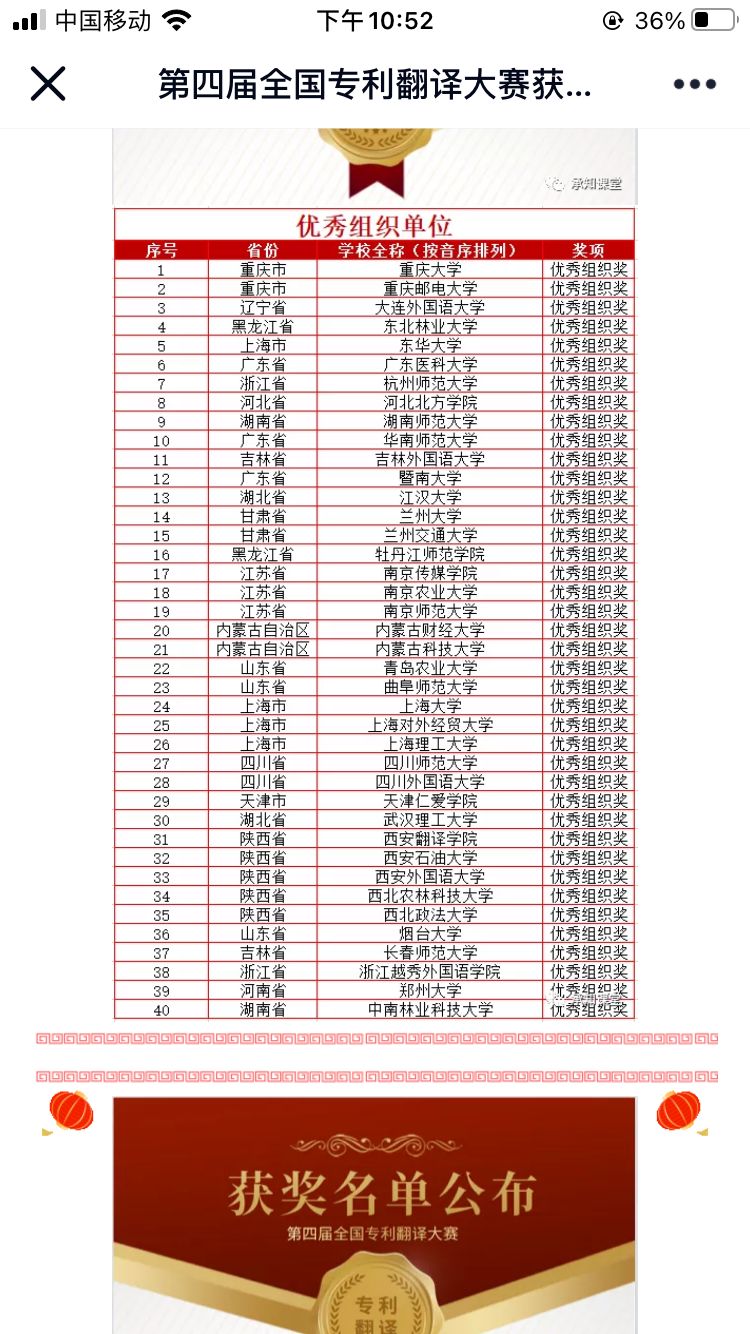 1月11日,由西安外国语大学主办、陕西省“一带一路”知识产权语言服务人才培养中心承办的全国英语笔译竞赛——第四届全国专利翻译大赛获奖名单公布。sunbet申搏官方网站荣获优秀组织奖,外国语学院英语专业19级的吕美琪和陈燕妮在636所国内外高校的参赛选手中脱颖而出,分别斩获“英译汉”组和“汉译英”组优秀奖。