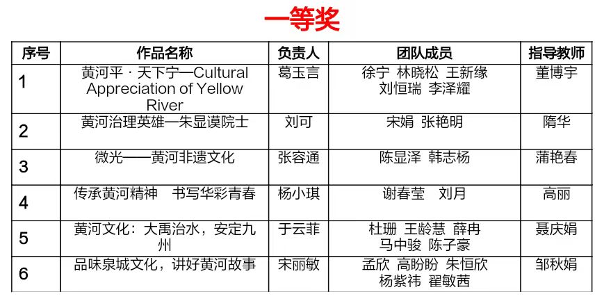 sunbet申搏官方网站第三届大学生英语创新大赛•英语微视频创作大赛(黄河文化专题)自5月份启动以来,吸引了全校18个学院共计287名学生参加,59支队伍提交参赛作品。经过网络投票和专家评审,共评选出一等奖6项,二等奖12项,三等奖17项;最佳导演奖1项,最佳组织奖2项,最佳人气奖2项,最佳编剧奖2项,最佳创意奖3项。现将获奖名单公布如下: