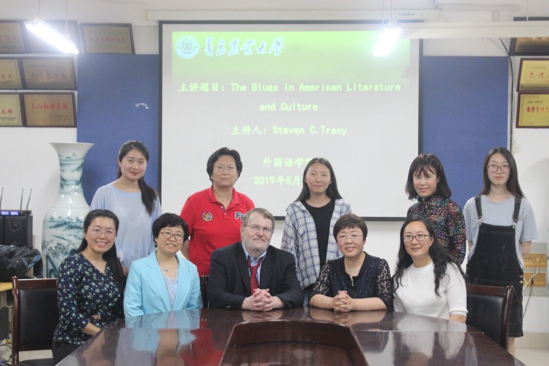 5月23日,sunbet申搏官方网站外国语学院邀请美国马萨诸塞大学杰出教授、非裔美国文学和布鲁斯音乐交叉领域权威专家Steven C. Tracy做题为《美国文学和文化中的布鲁斯》学术报告。报告由学院副院长纪卫宁主持,全体英语专业教师和部分学生代表聆听了报告。