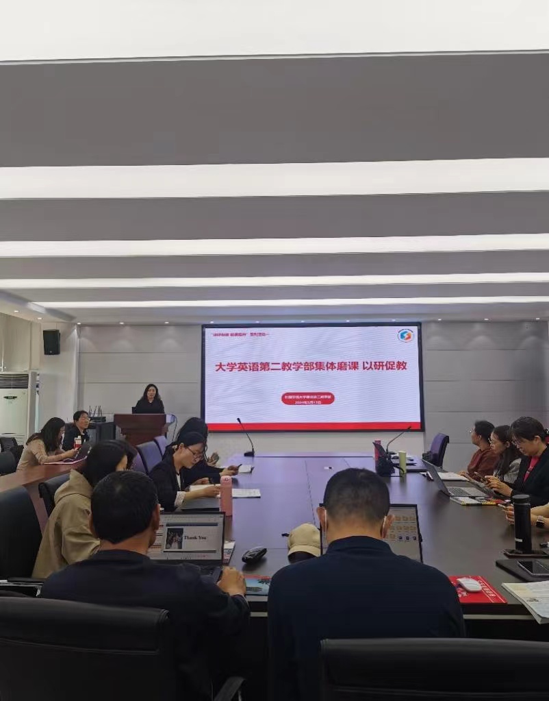 为迎接本科教育教学审核评估,2024年5月13日上午,外国语学院大学英语第二教学部在文经楼C220集体磨课,旨在以研促教,提升教学质量和水平。