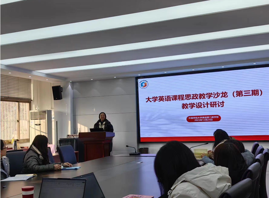 为进一步深化课程思政教学改革,更好地推进课程思政建设,发挥课堂教学立德树人的主渠道作用,12月25日,外国语学院大学英语第二教学部在文经楼C220资料室举办第三期大学英语课程思政教学沙龙。本次活动由大学英语第二教学部主任聂庆娟主持,大学英语第二教学部全体教师参加会议。
