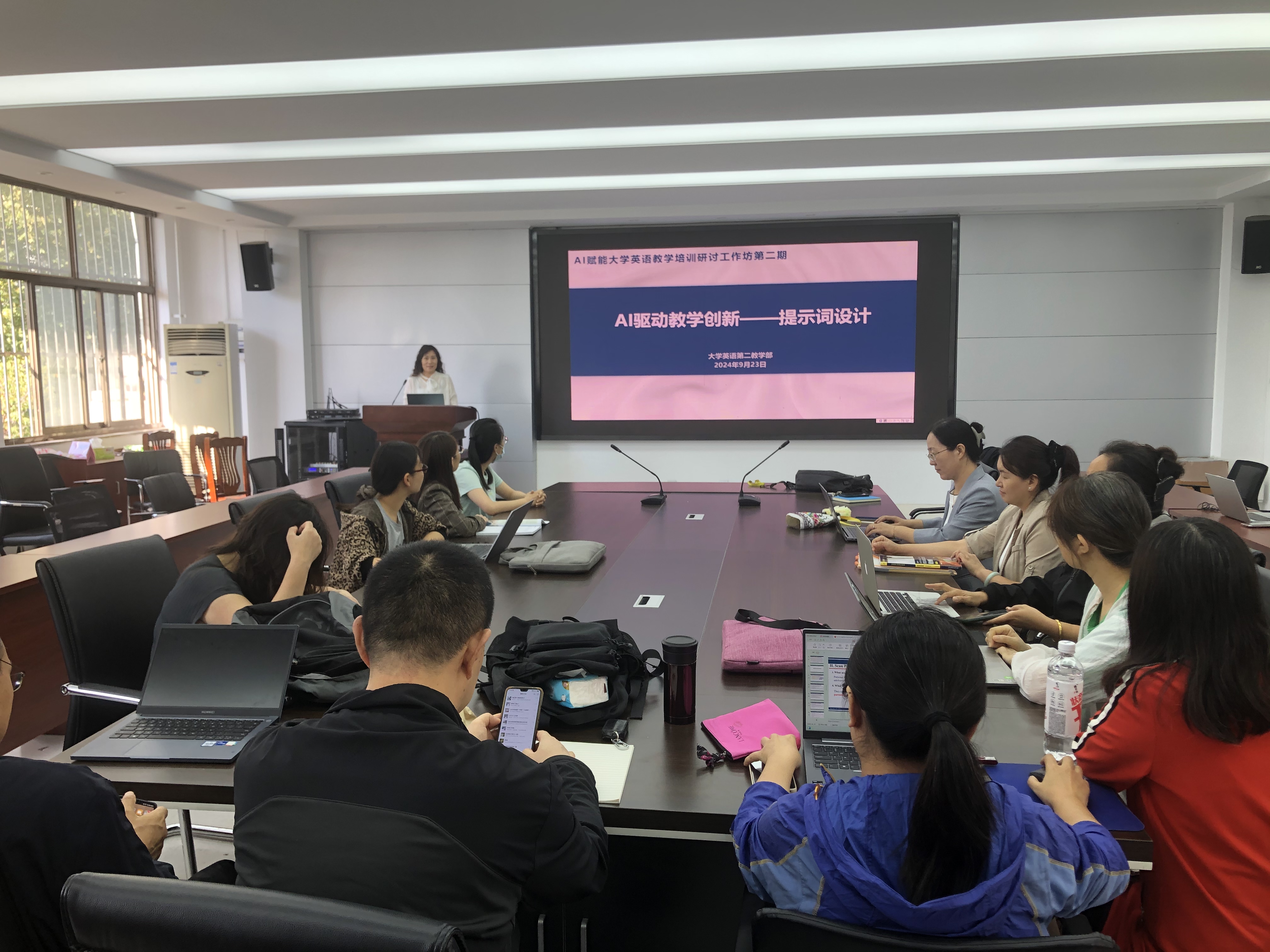 为扎实推进国家教育数字化战略行动,将人工智能技术新优势转化为教学改革发展的新动能,积极探索“AI+教育”在专业与课程建设中的深度融合路径,2024年9月23日外国语学院大学英语第二教学部在文经楼C220进行AI赋能大学英语教学培训研讨工作坊,本期活动主题为AI驱动教学创新——提示词设计,由大学英语第二教学部主任聂庆娟主持并带领全体教师进行AI实操训练。