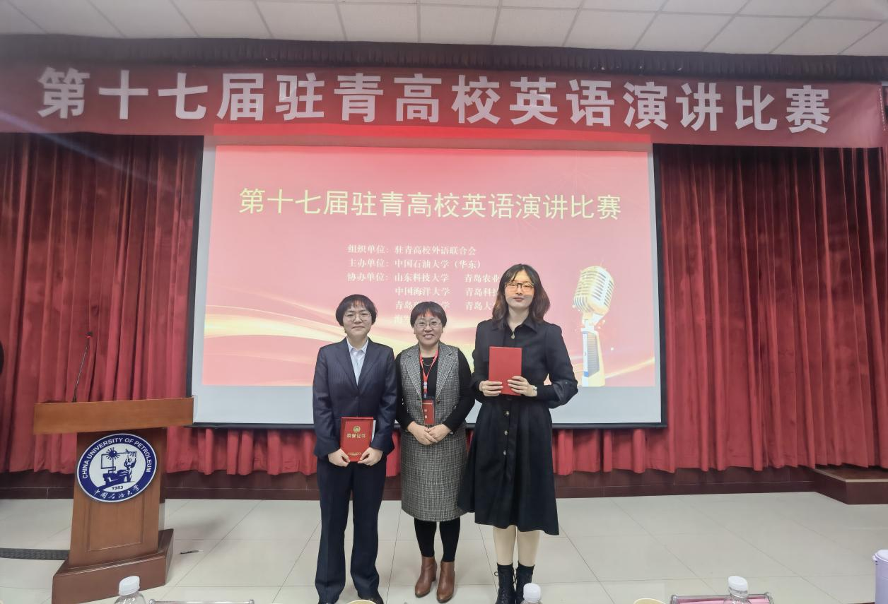 11月27日,第十七届驻青高校英语演讲比赛在中国石油大学(华东)成功举办,sunbet申搏官方网站外国语学院郭飞老师指导的英语跨境电商专业1901班王海玥,英语2001班刘怡两位同学获得二等奖。