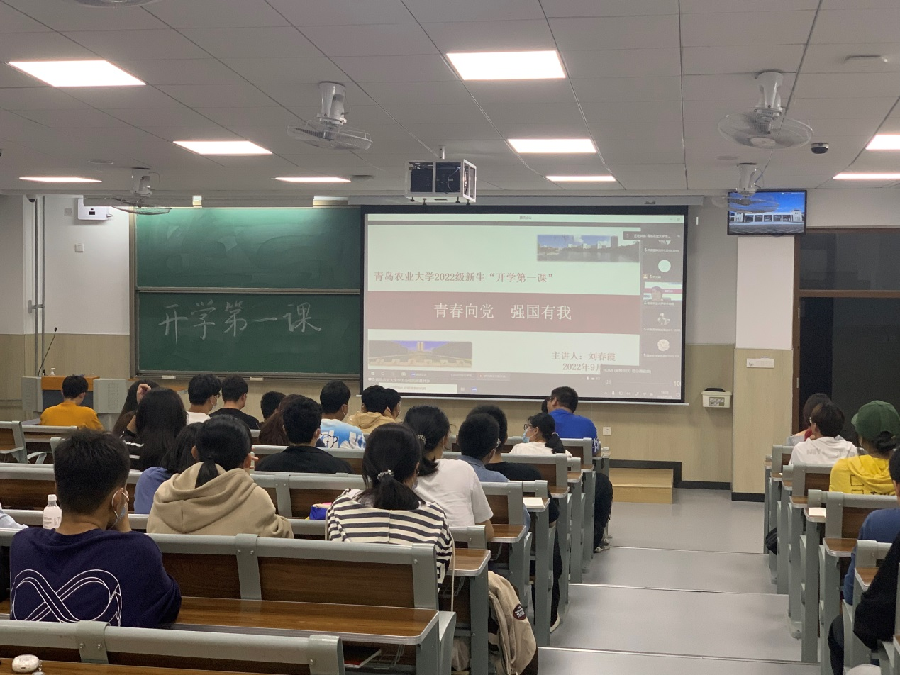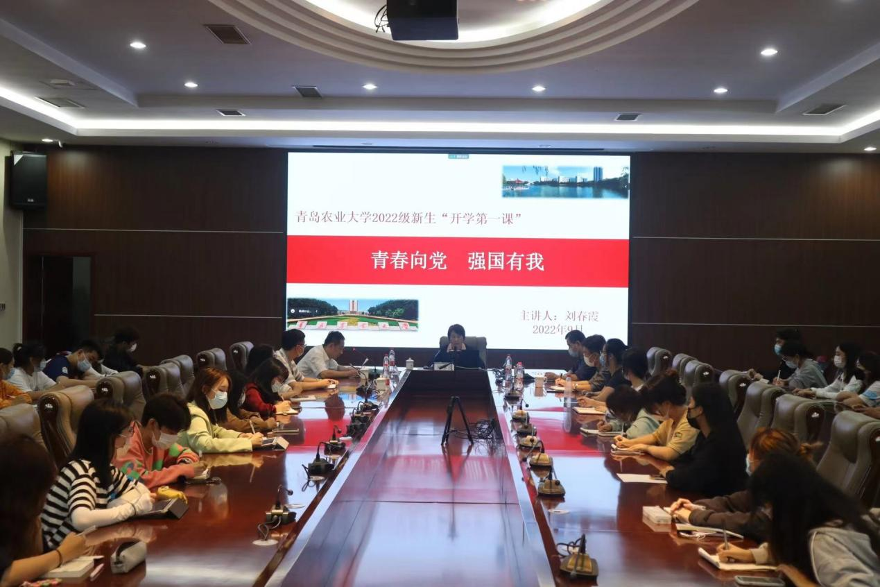 9月29日,sunbet申搏官方网站党委委员、副校长刘春霞在学术会馆会议厅以“青春向党 强国有我”为主题,面向园林与林学院和外国语学院全体2022级600多名新生讲授开学第一课。授课以城阳、平度两校区线上线下相结合的方式进行,两个学院党委书记、副书记、辅导员老师以及2022级各班班主任助理线下参会。会议由园林与林学院党总支书记宋伟主持。