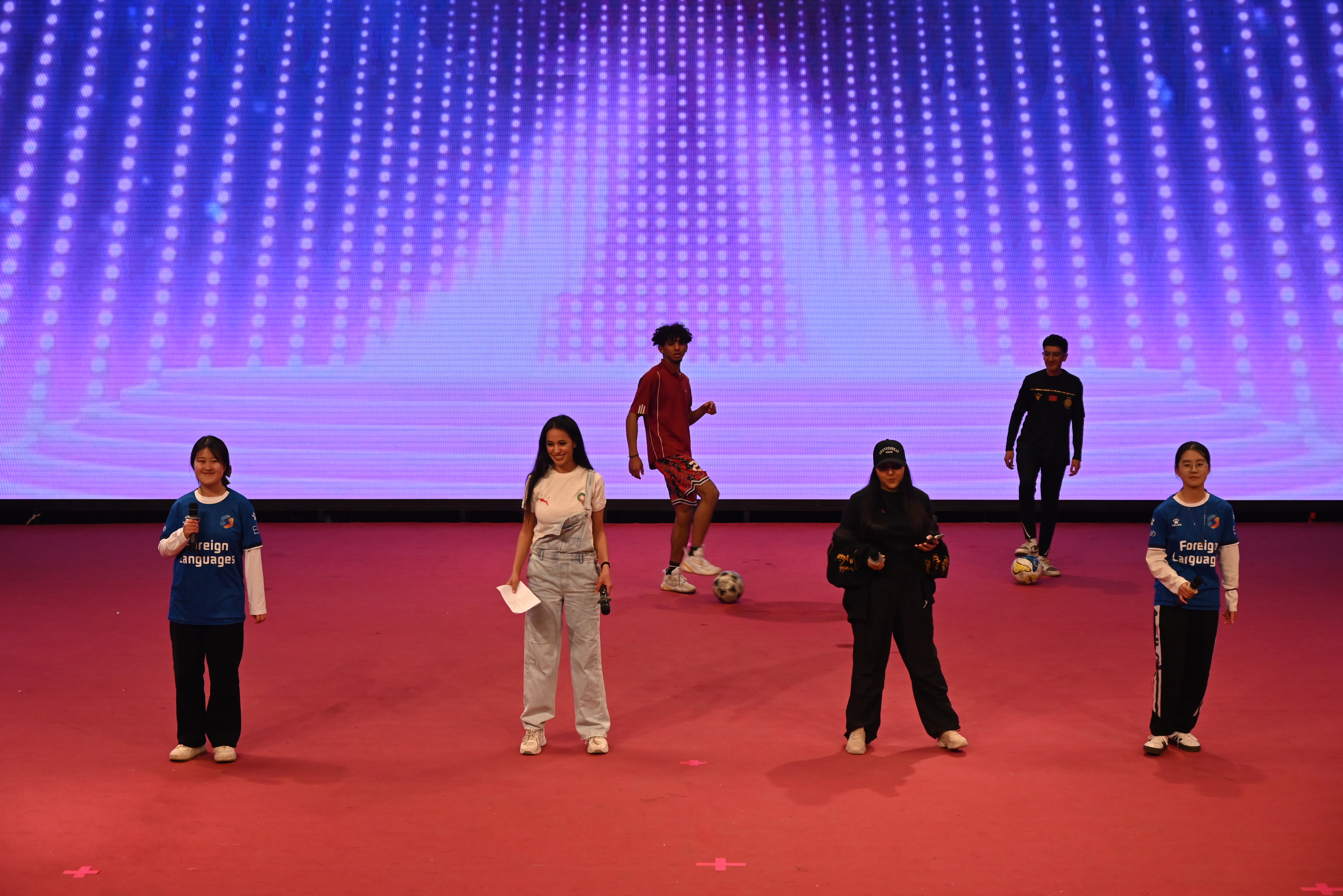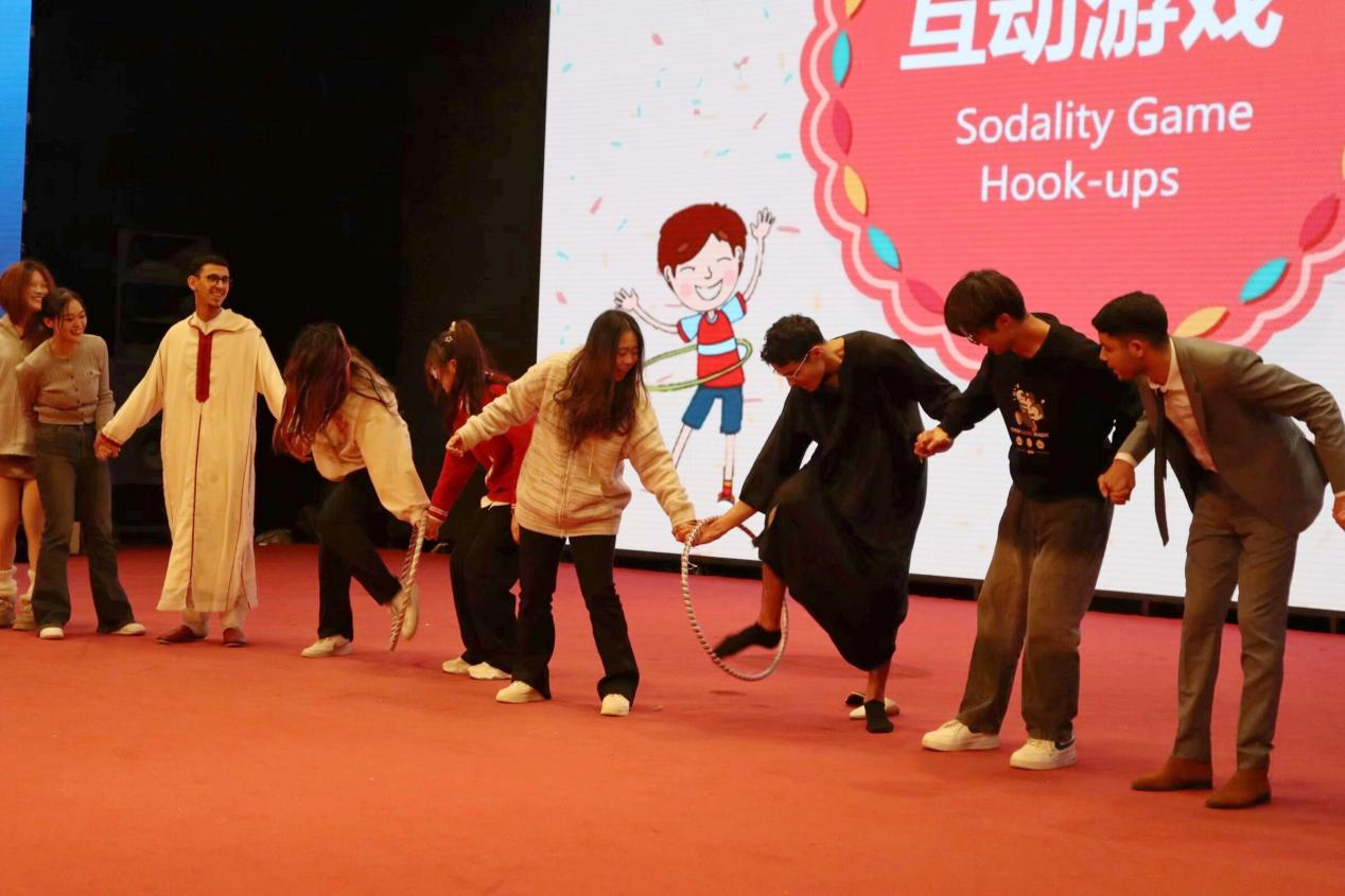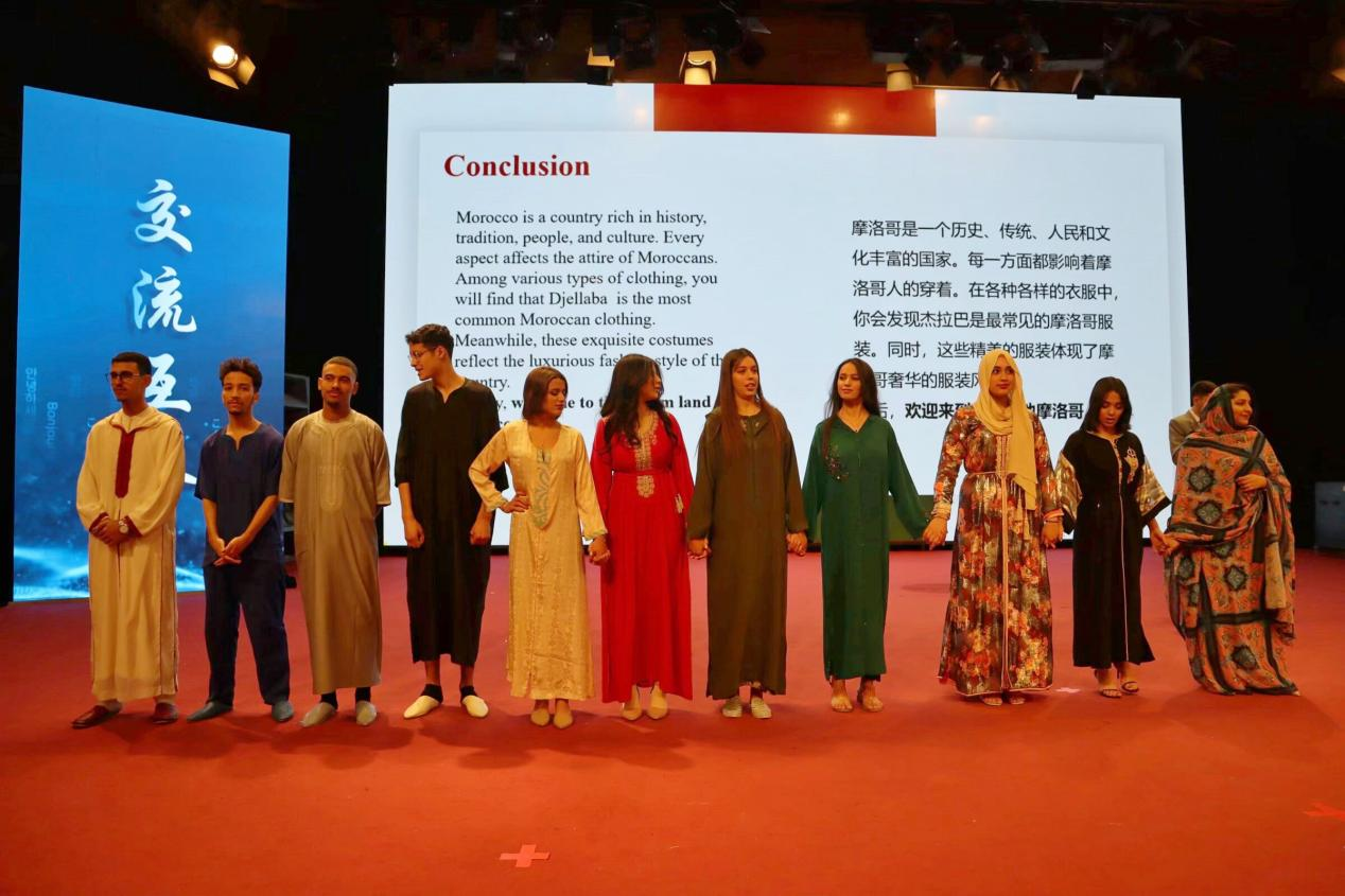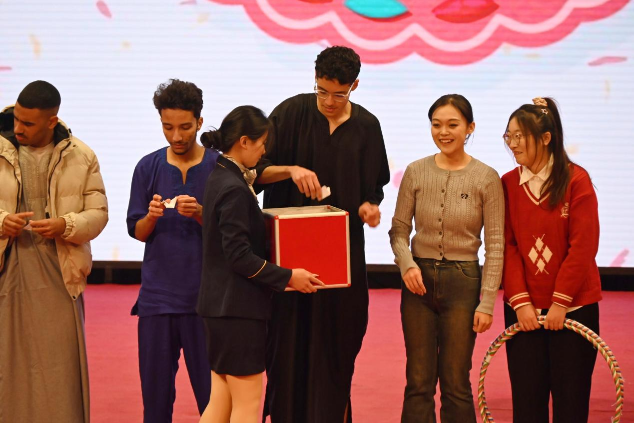服饰之美,背后是文化底蕴。摩洛哥留学生带来了摩洛哥传统服饰展示,丰富多彩的传统服饰,展示了摩洛哥的国家传统和文化。在互动环节中,现场随机邀请学生和摩洛哥留学生同台进行“环环相扣”游戏,晚会的气氛达到高潮。