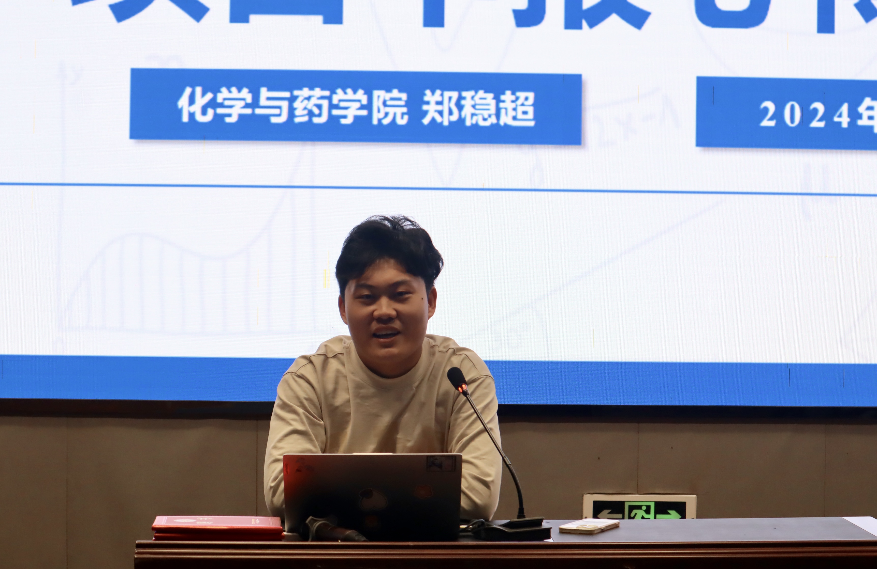 随后,化学与药学院学生会执行主席郑稳超分享《大学生创新创业计划训练项目申报》心得。他从大学生创新创业计划训练项目的总体要求、基本情况、立项依据、经费预算四个方面进行了介绍,聚焦于项目策划书的撰写技巧并为同学们提供了多种制作项目PPT的方法、思路和许多切实可行的撰写建议。