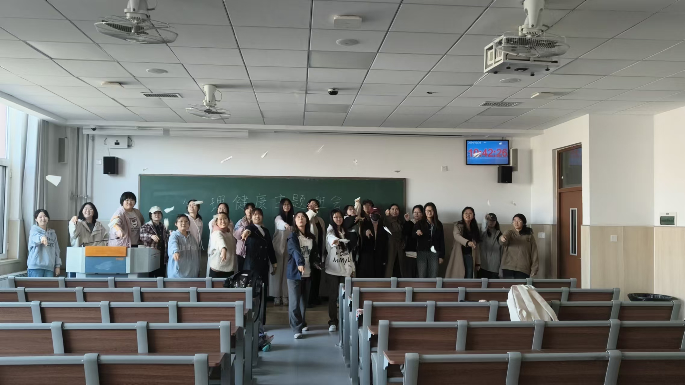 此外,学院还积极组织全体同学观看“大学生心理健康大讲堂”系列课程、通过在班级群、公众号分享宣传,学生以班级和宿舍为单位进行观看。各班级开展了“更积极 更快乐 更健康”主题班会活动,班会活动形式多样,通过心理小游戏、快速问答、多语传递等形式,将精神卫生日等相关心理健康知识与外语相结合,彰显了外国语学院学院特色。