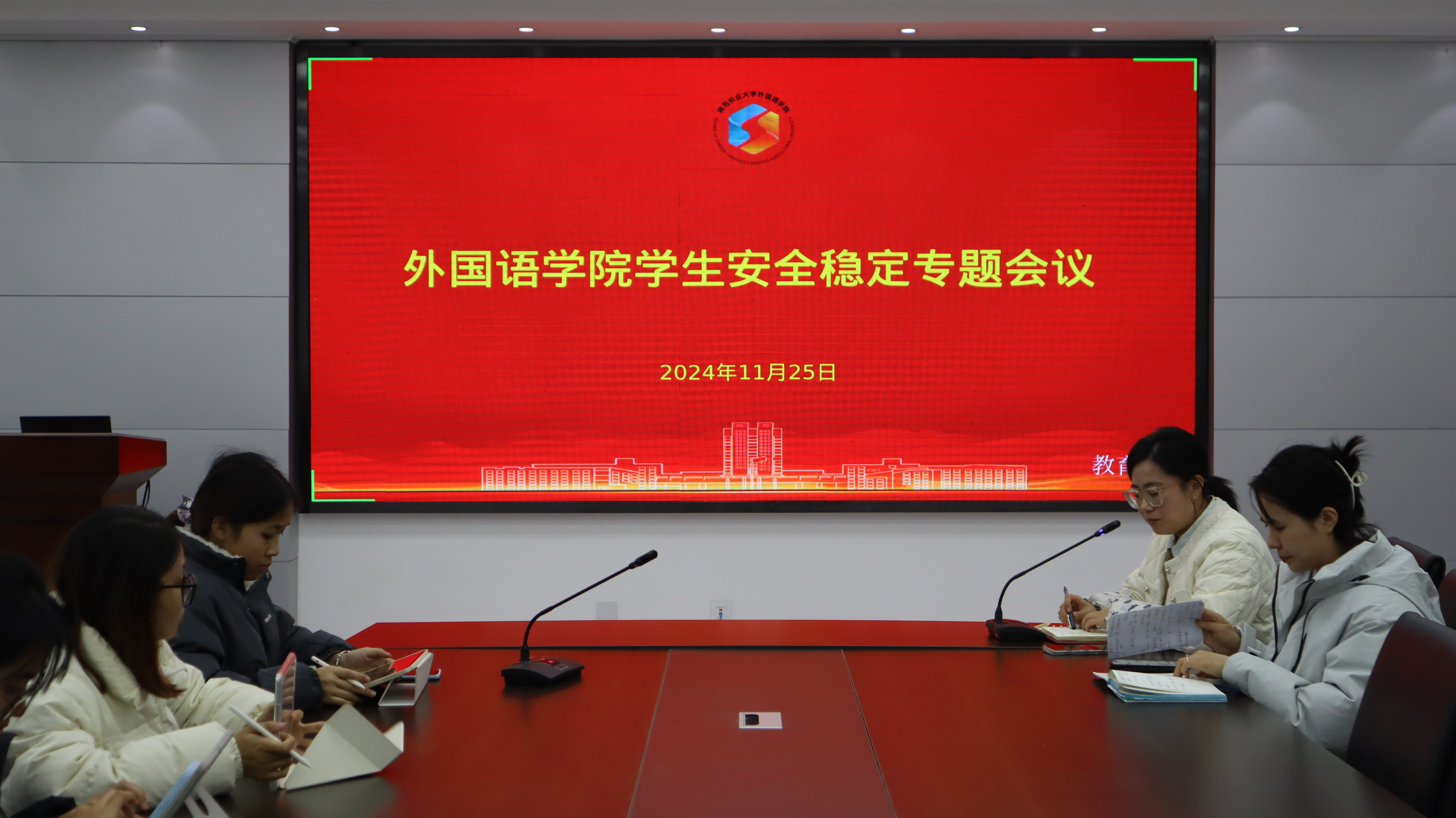 为进一步夯实学院学生安全教育管理工作,切实提高学生的安全防范意识,全力营造安全、和谐、有序的学习与生活环境。11月25日,外国语学院于文经楼C220会议室召开学生安全稳定专题会议。本次会议由学院团委书记线郁主持,辅导员仇文峰以及全体班长、团支书共同参会。