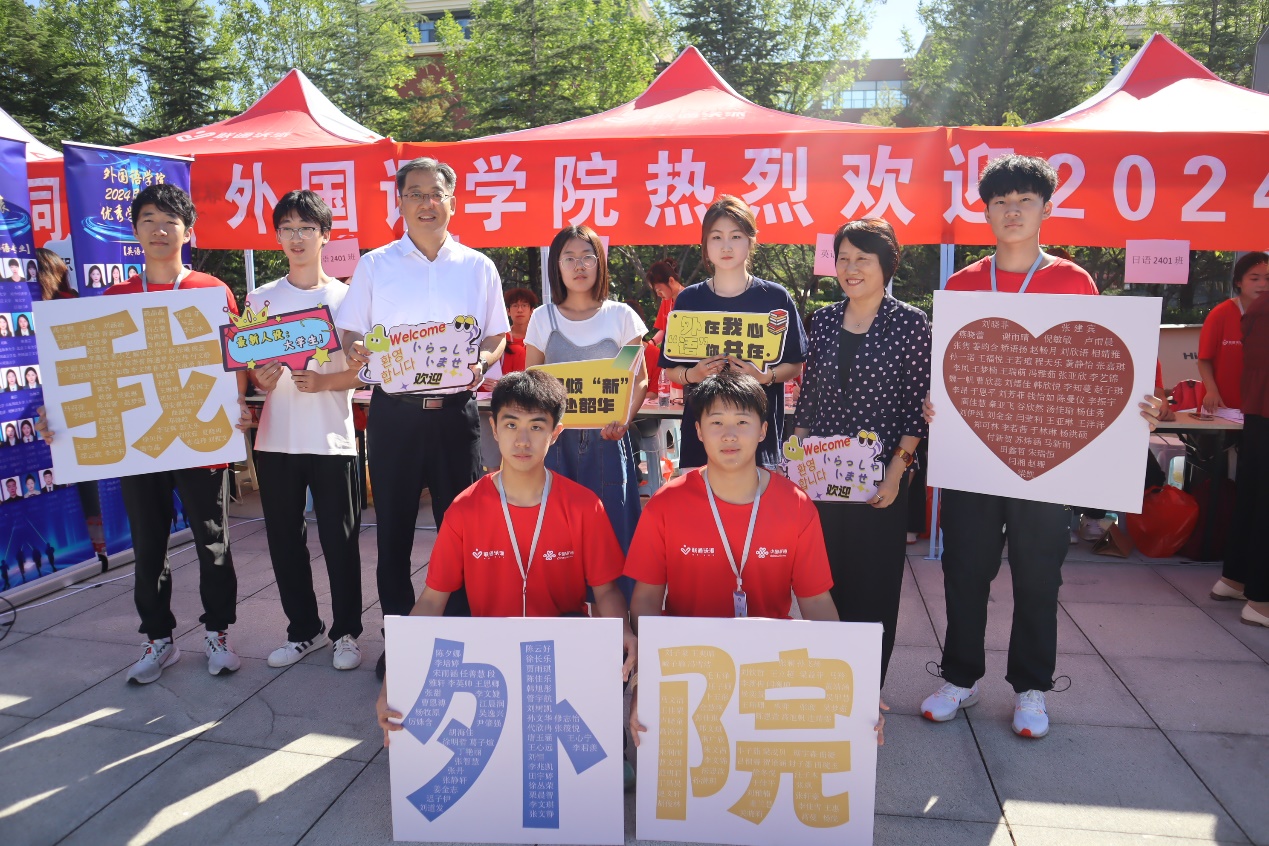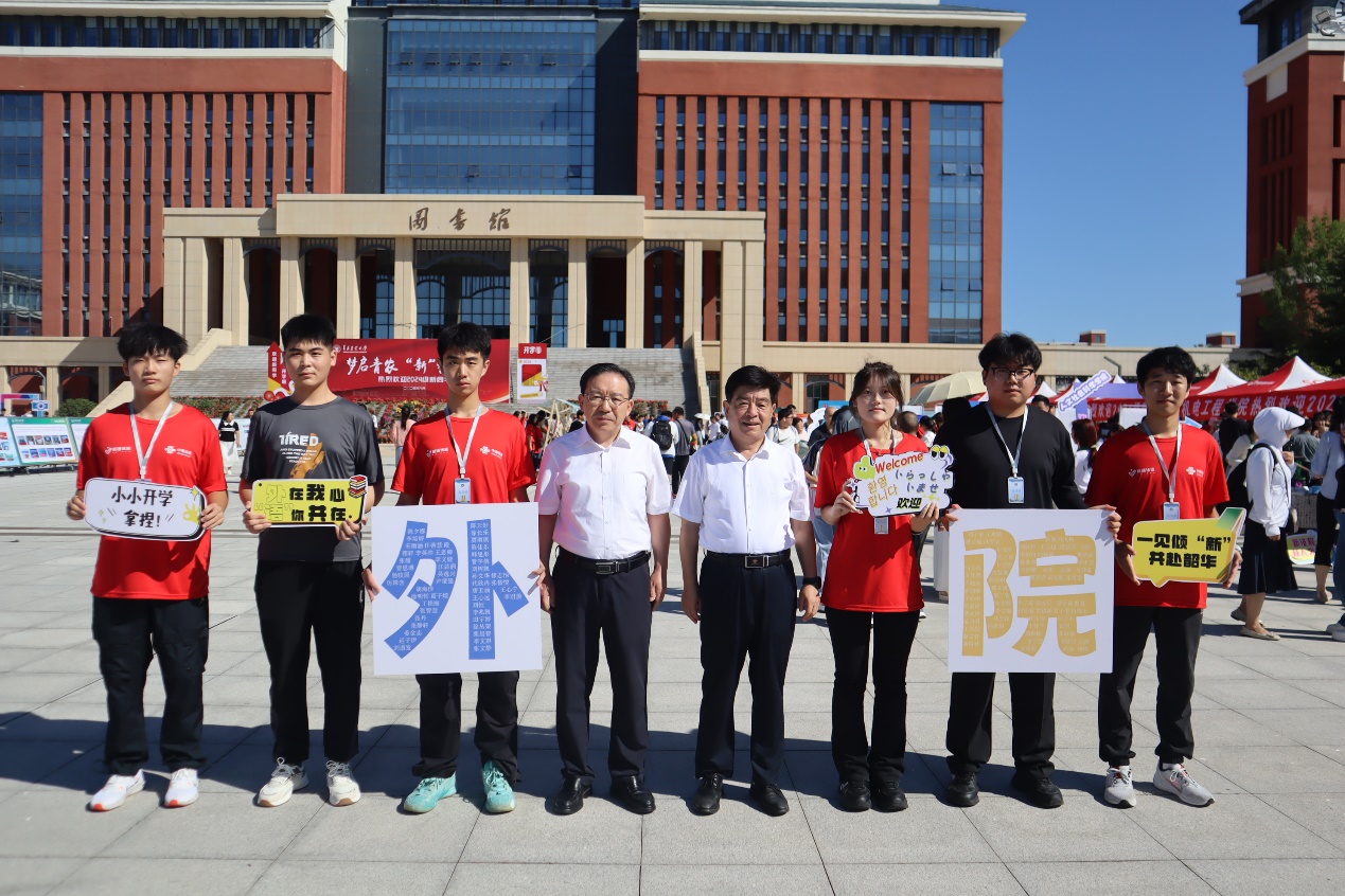 9月6日,sunbet申搏官方网站外国语学院喜迎2024级新同学。校党委书记潘军,校长赵金山,校党委副书记刘春霞、田义轲,副校长孟晓军、张玉梅莅临学院迎新现场看望新生、指导工作,并与学院新生、新生家长、迎新志愿者代表合影留念。