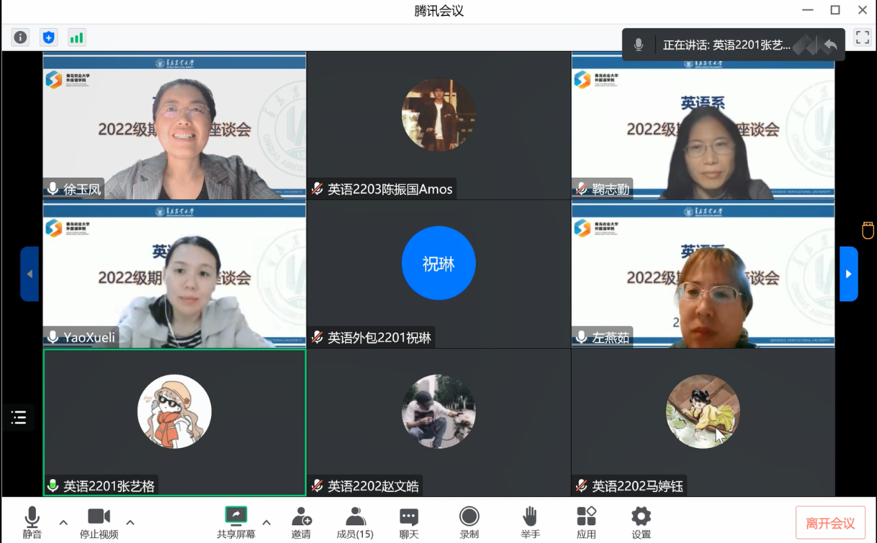 大一的同学们提出了在英语口语、听力、语法等方面的学习问题,大二的同学们着眼于对日常学习方法与途径提出疑问,大三的同学们询问了考研指导及国际交流的相关问题,大四的同学们针对考研考公的压力纾解进行了提问。老师们对同学们提出的问题与建议进行了详细解答和充分肯定。老师们强调,语言学习需要把功夫下在平时,同学们应及时和老师沟通;在课堂上要积极与老师配合,共同提高课堂效率、共同营造良好的学习氛围,鼓励同学们在今后的学习中也畅所欲言,勇敢表达心声,为自己未来的发展及英语系的教学工作积极建言献策。