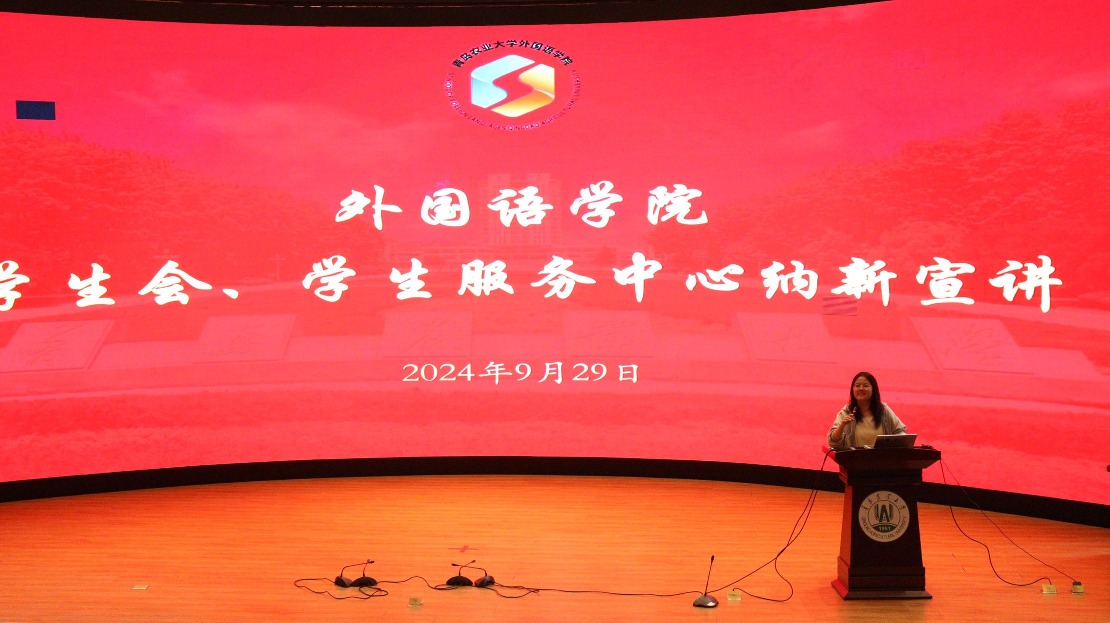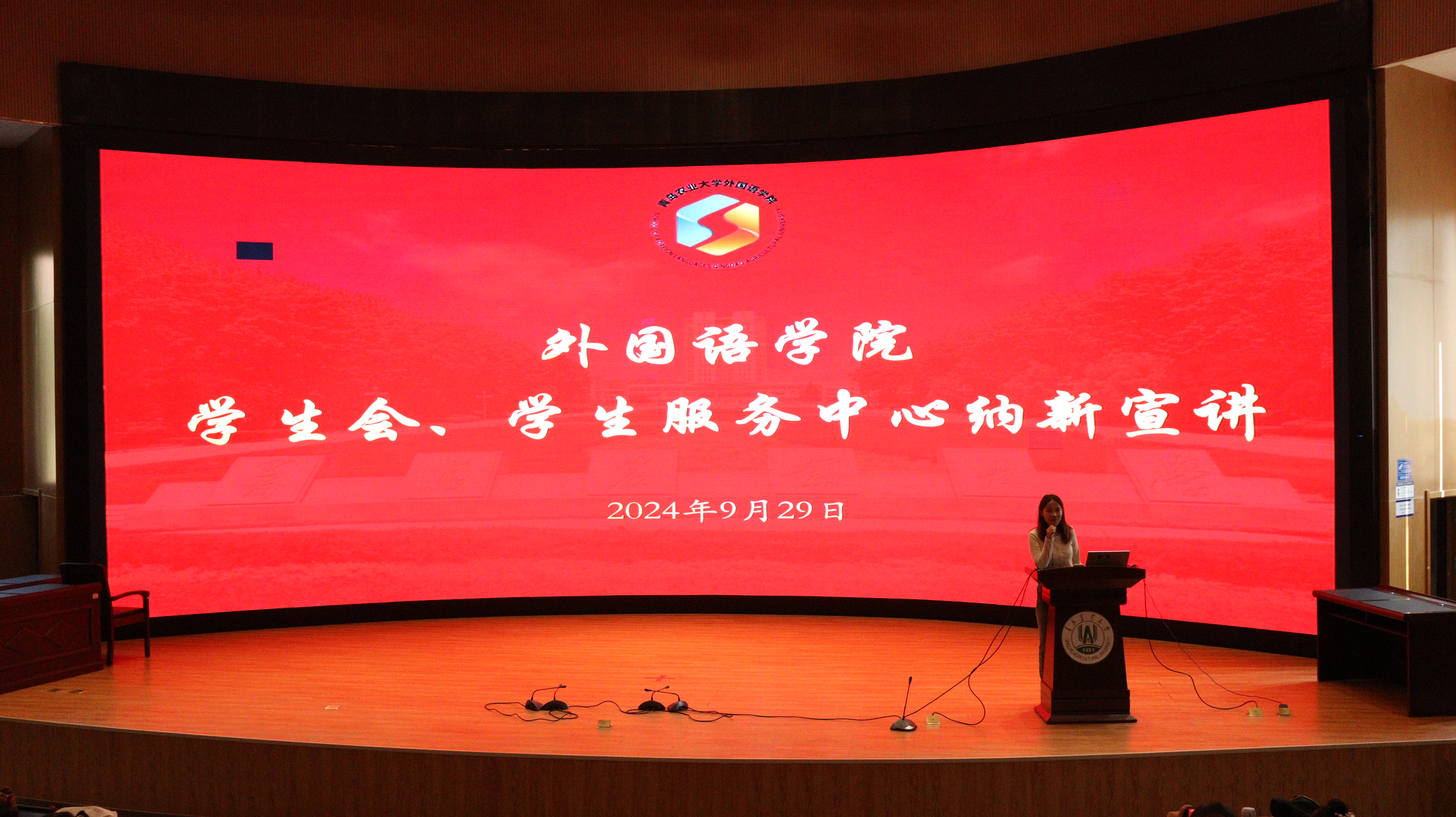 为鼓励新生在学习专业文化知识的同时锻炼提升各方面能力,促进综合发展,并加强院学生会建设。9月29日,外国语学院于平度校区明德楼举行了2024届院学生会纳新宣讲活动。学生会及学生服务中心各部负责人宣讲,2024级新生参加,宣讲活动由主席团成员王玥然、杨颖主持。