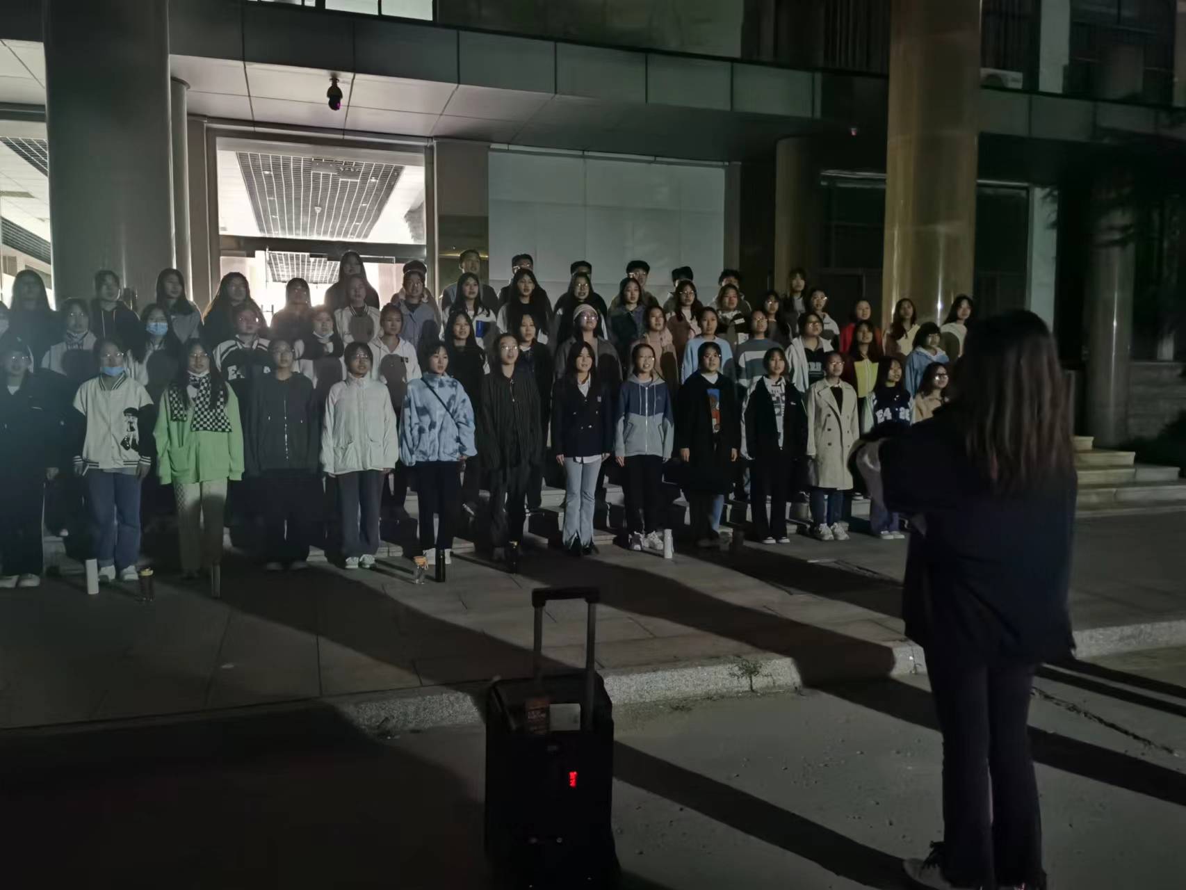 在学院领导和学工办全体老师的指导下,院学生会文艺部组织开展训练。外院学子充分利用课余时间认真排练,积极练唱。自十月份正式开展合唱训练以来,72名合唱队员不惧秋冬的寒风,凭借毅力保障了全队训练零缺席,许多同学更是上完最后一节晚课再匆匆赶去训练;无论是前期训练还是比赛上台,同学们都热情洋溢,声音洪亮,时刻拿出自己最好的状态,充分展现了外国语学院学生朝气蓬勃、积极昂扬的精神面貌,更体现出全体师生团结一致,奋发向上的毅力和决心。