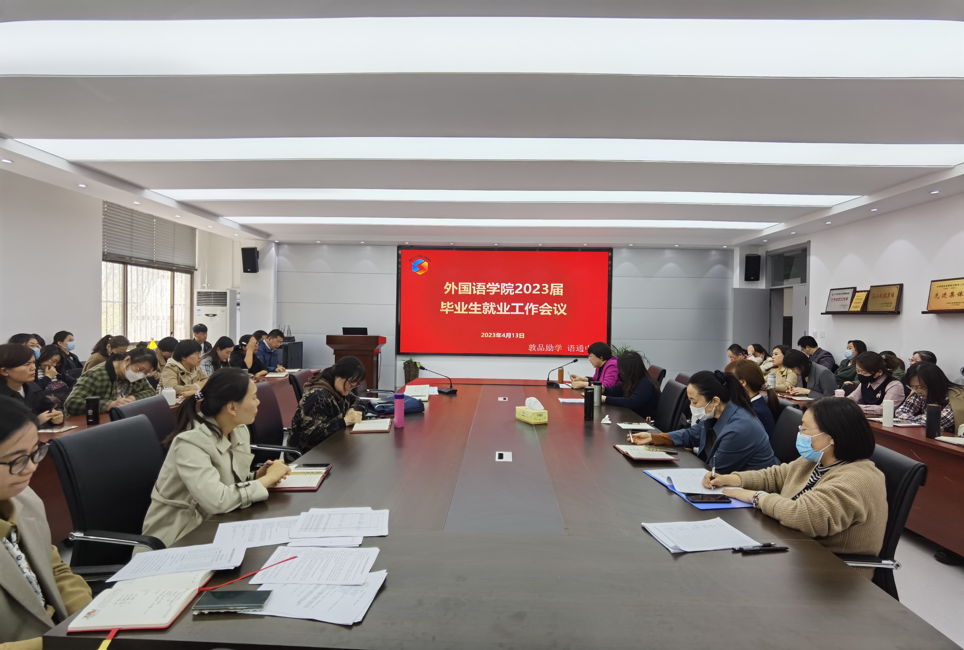 4月17日,sunbet申搏官方网站外国语学院于文经楼C220会议室召开2023届毕业生就业工作推进会。外国语学院全体教职工参加会议。