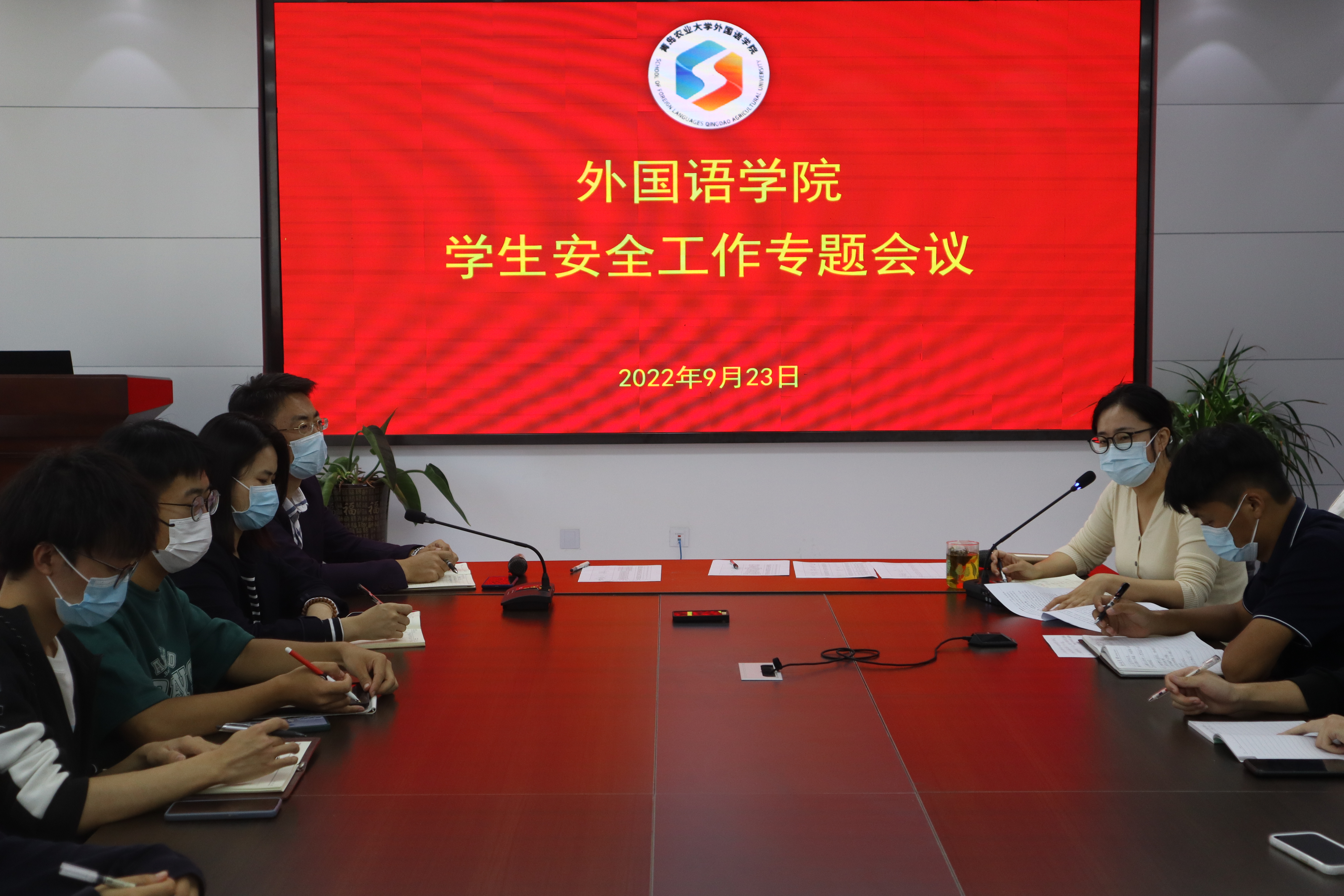 2022年9月23日,外国语学院召开新学期学生干部培训会议,外国语学院党委副书记、副院长盛金玉担任主讲,团委书记线郁、辅导员王洋洋、仇文峰、邹晓婷以及学院各班班长、团支书,全体学生会成员参会。