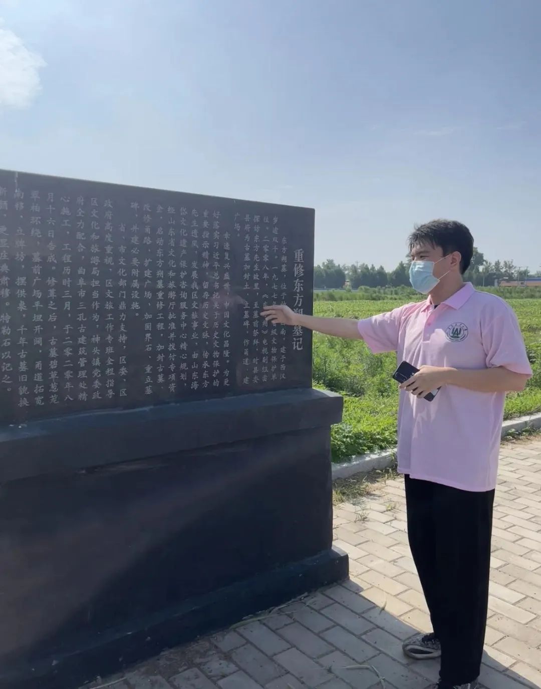 考察过程中,团队成员细心研读每一墓碑文,用心感受每一处曼倩遗风。“世人不识东方朔,大隐金门是谪仙”,东方朔的事迹在当地广为流传。通过队长及讲解员的介绍,团队成员对东方朔文化有了更深入的了解,同时更加坚定了传承优秀文化的信心与决心,推动地区乡村文化振兴。
