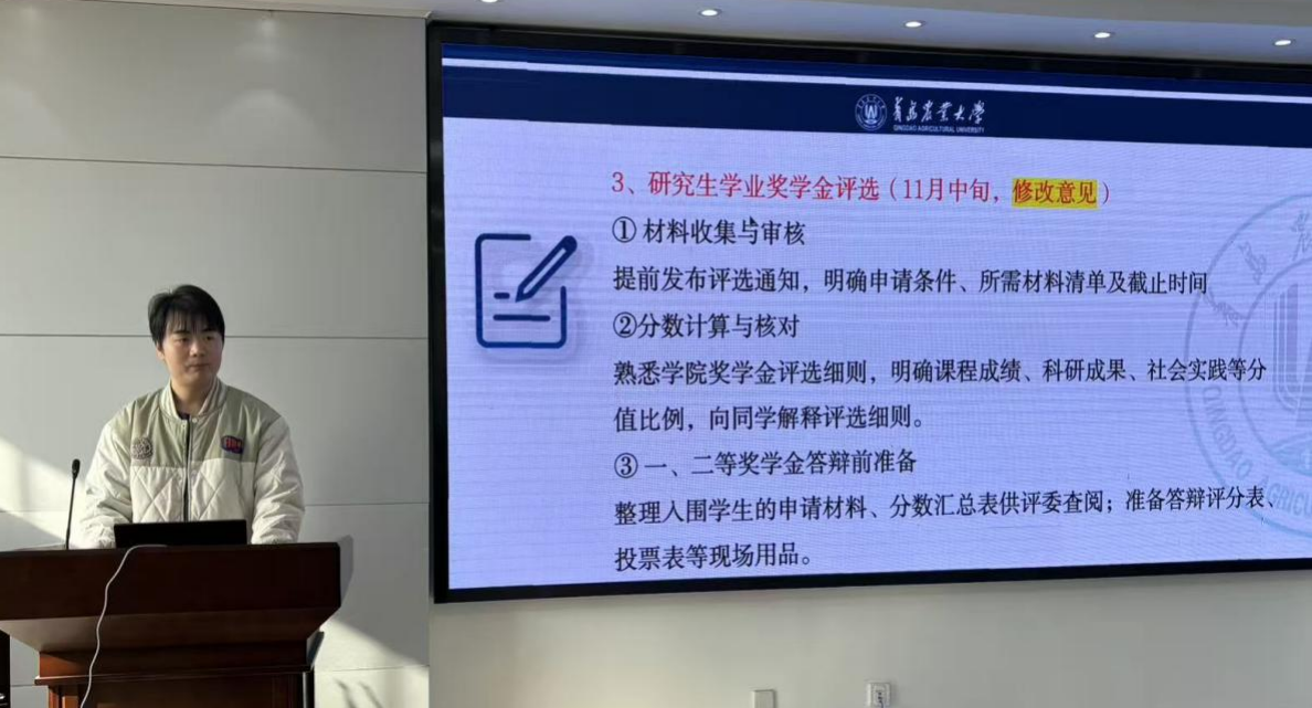 会上,各部门部长围绕职责分工和重点工作进行交流发言,对部门任务和工作要求作出说明。学术部、宣传部、权益部及实践与乡村振兴部结合实际,分别就学科竞赛与学术活动、新闻宣传与新媒体建设、学生权益保障以及社会实践组织等方面进行了介绍,进一步明确了工作重点。张一岳对本次培训会进行总结。她表示,各部门要强化沟通协作,压实工作责任,以务实高效的工作作风推动研究生会各项工作有序开展。