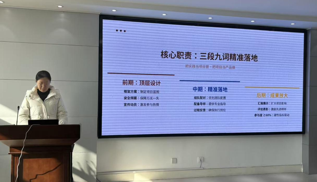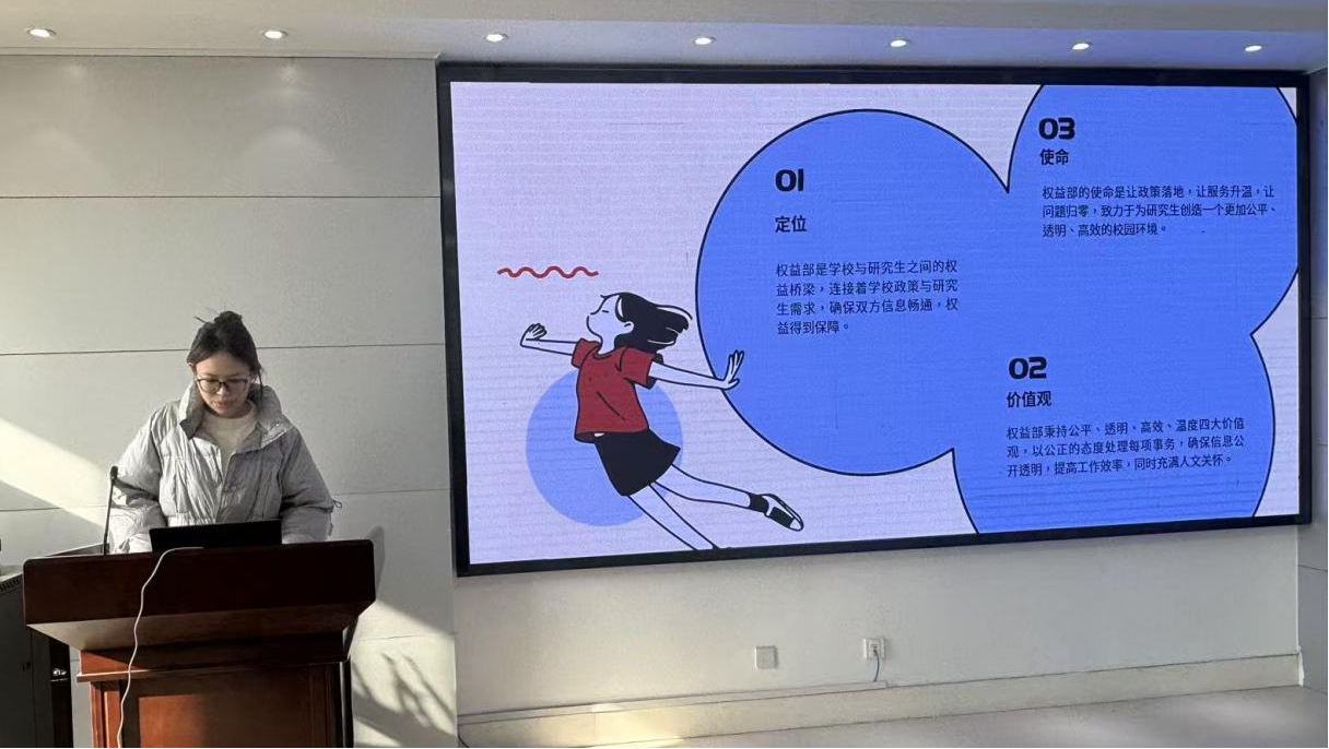 培训会后期,王欢欢以《学习贯彻“十五五”规划教育精神》为主题作专题分享。她指出,研究生干部要立足学生工作和基层服务实践,增强责任意识和担当精神,在服务同学、服务社会中实现自身价值。