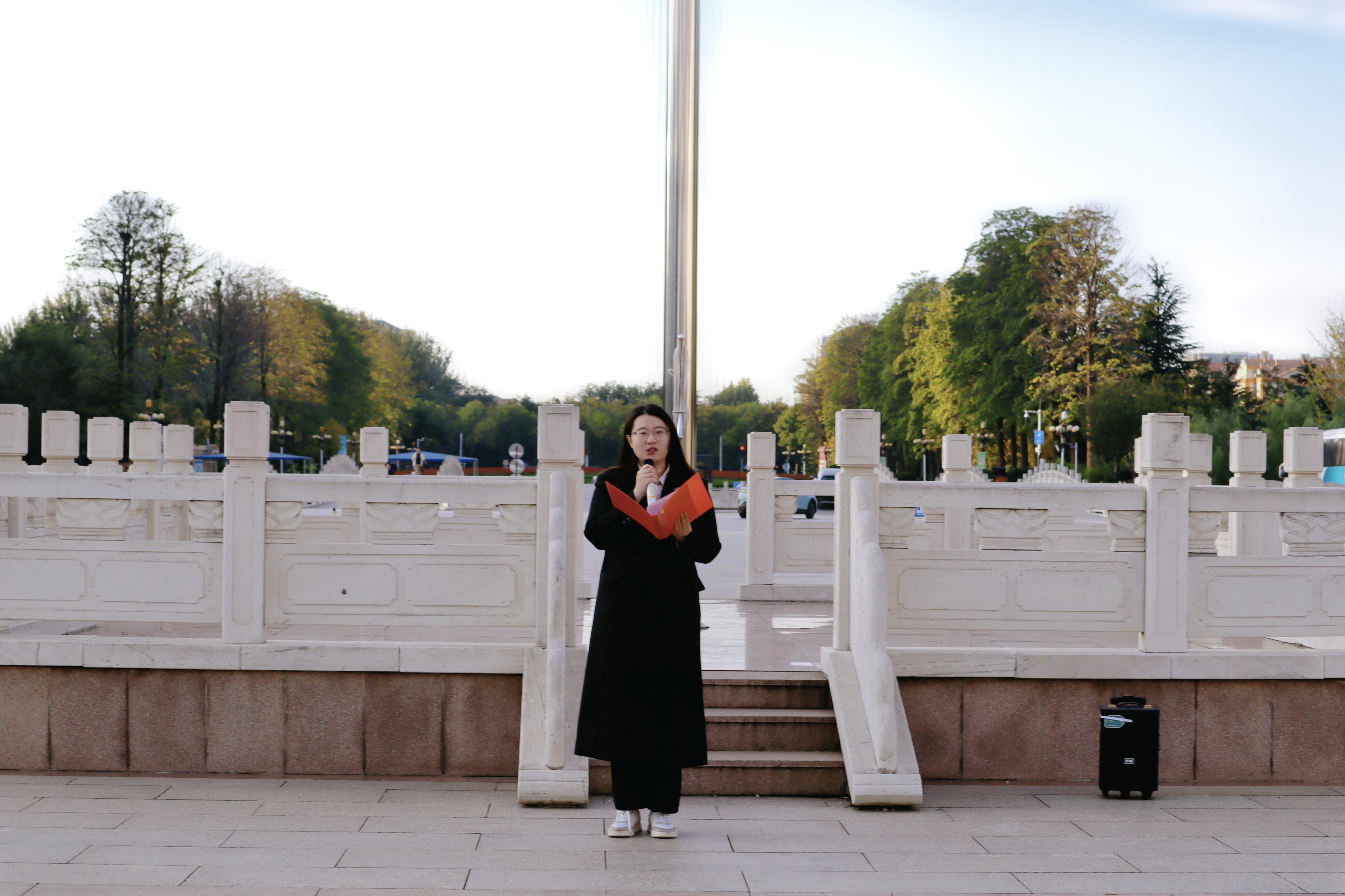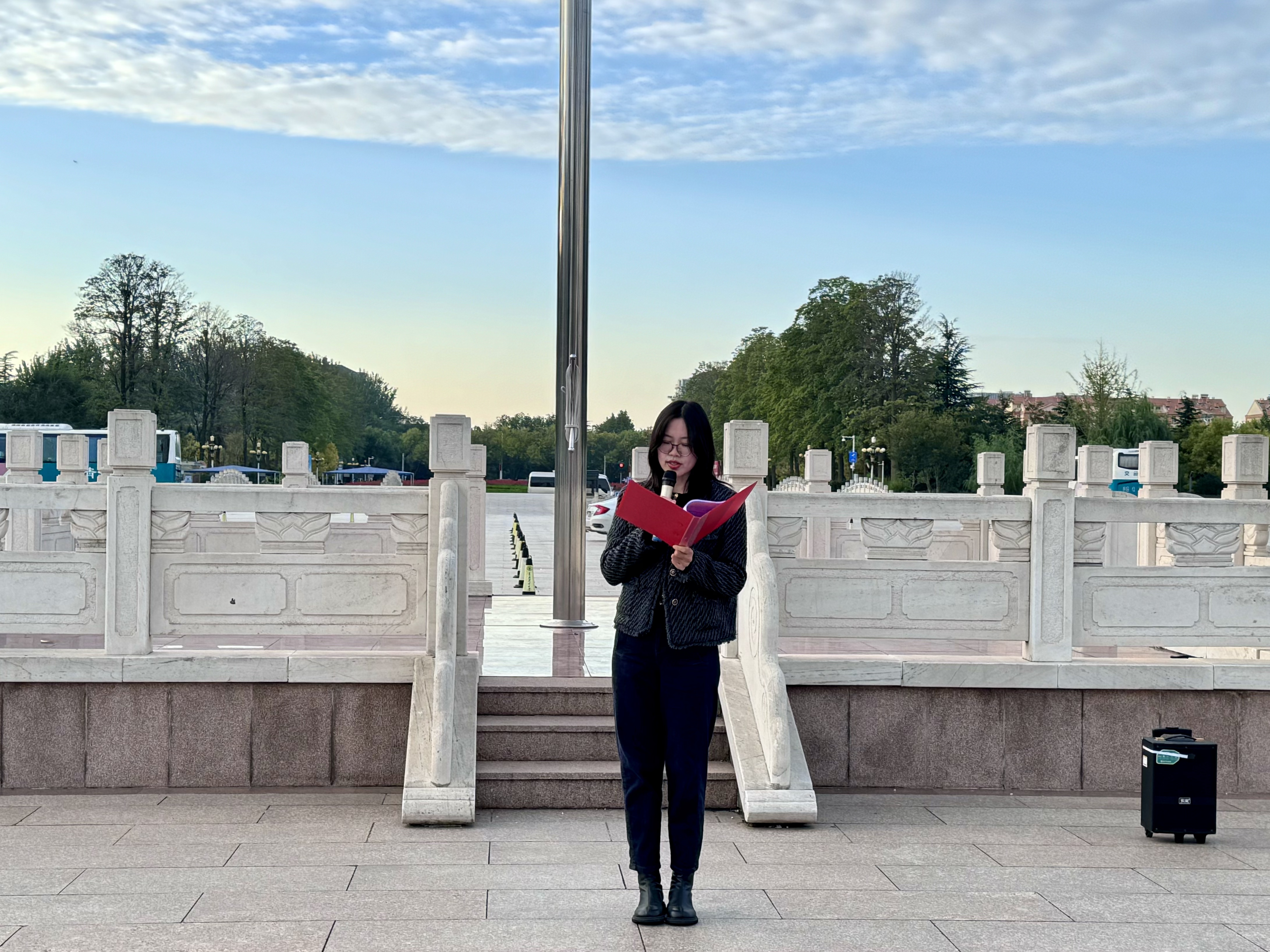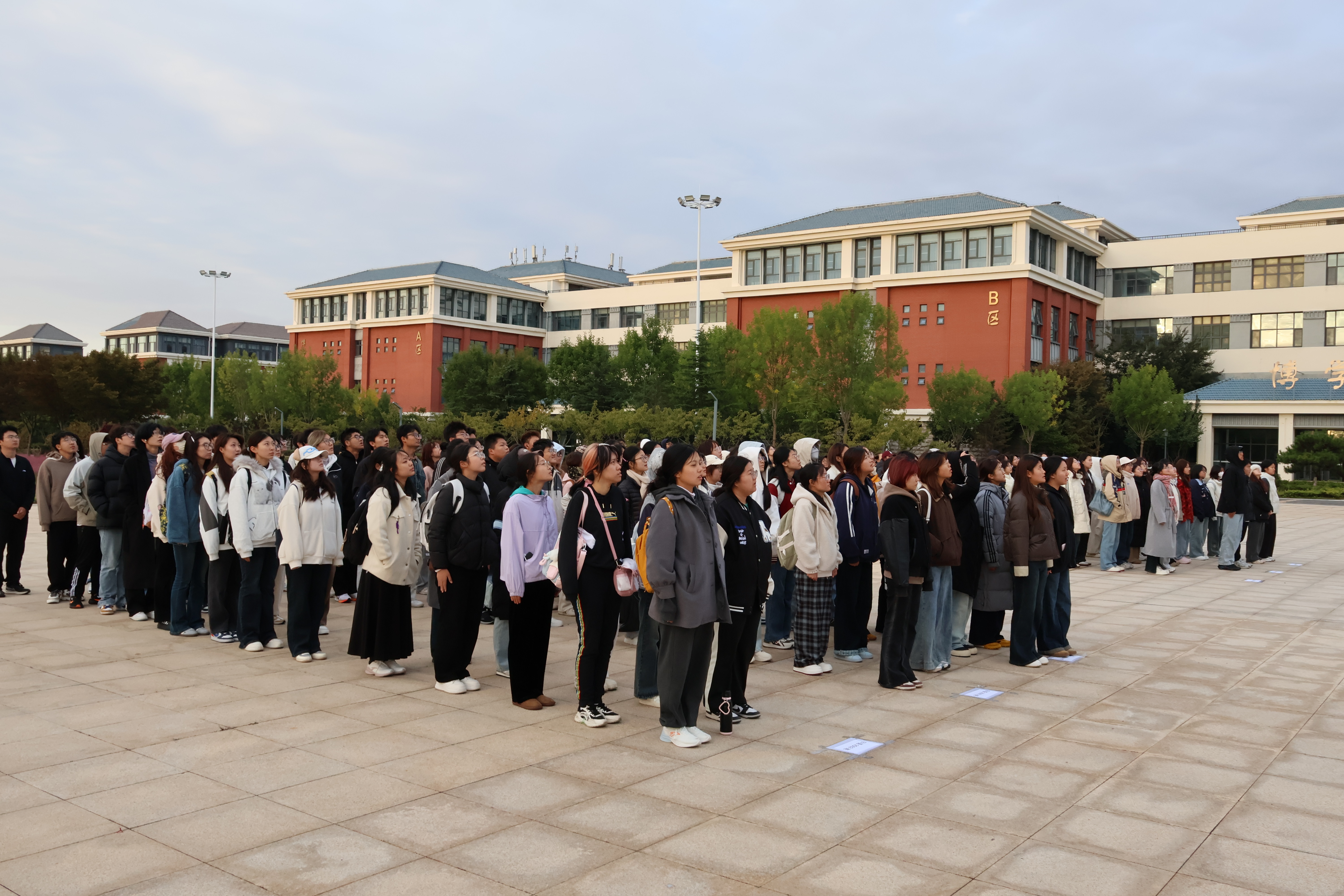 10月20日,外国语学院分别于城阳校区虹子广场和平度校区学子广场开展“厚植爱国情怀,勇担历史使命”主题团日活动暨升国旗仪式。城阳校区、平度校区升旗仪式分别由团委书记线郁、辅导员王洋洋主持,2023级、2024级、2025级全体学生参加。