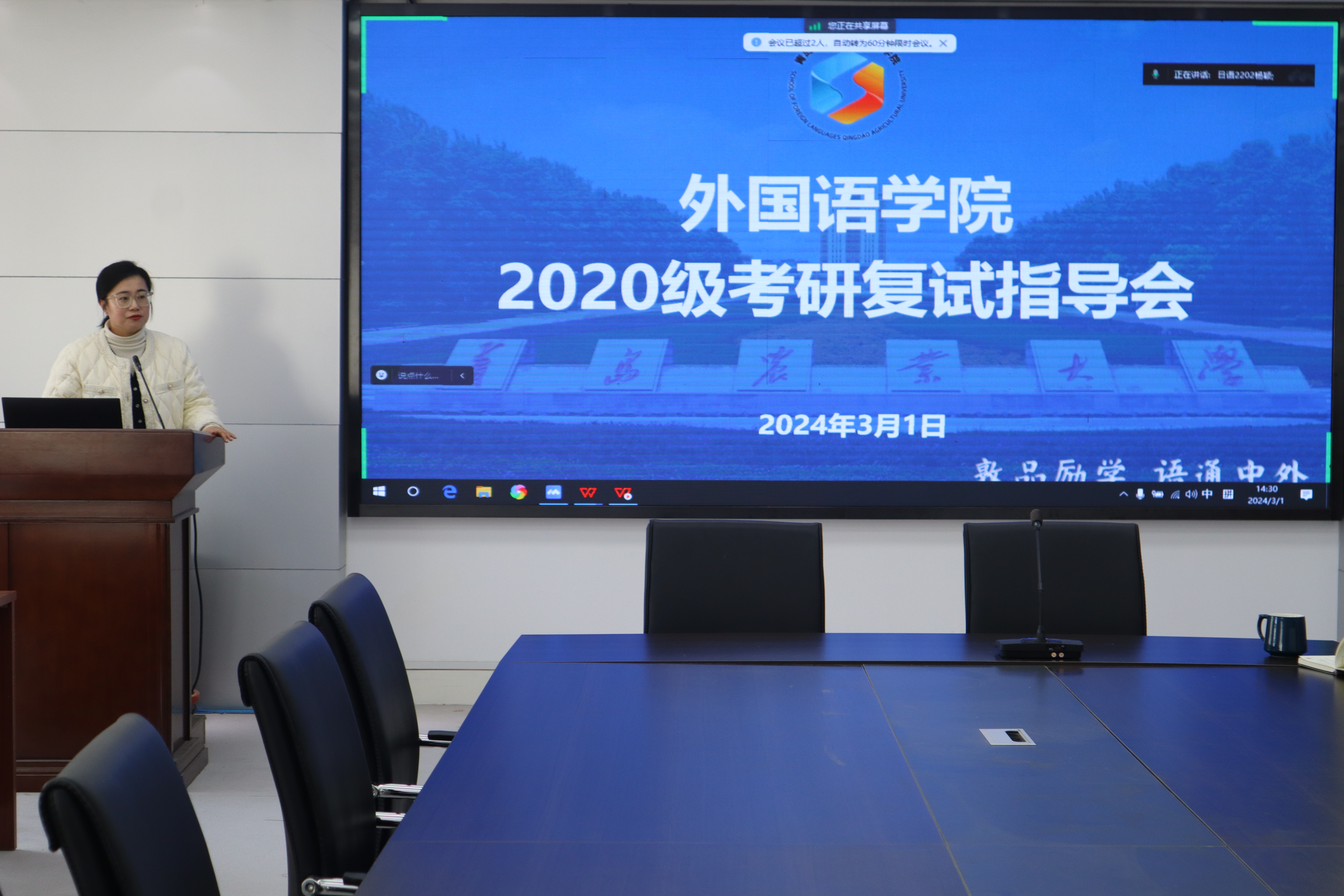 为全面助力2024届毕业生考研升学,3月1日,sunbet申搏官方网站外国语学院于文经楼C220会议室举办考研复试指导会。会议采用线上线下相结合的方式,由英语系系主任徐玉凤、英语系副主任兼跨境电子商务方向负责人左燕茹、团委书记线郁主讲。学院辅导员仇文峰、大四考研学生参会。