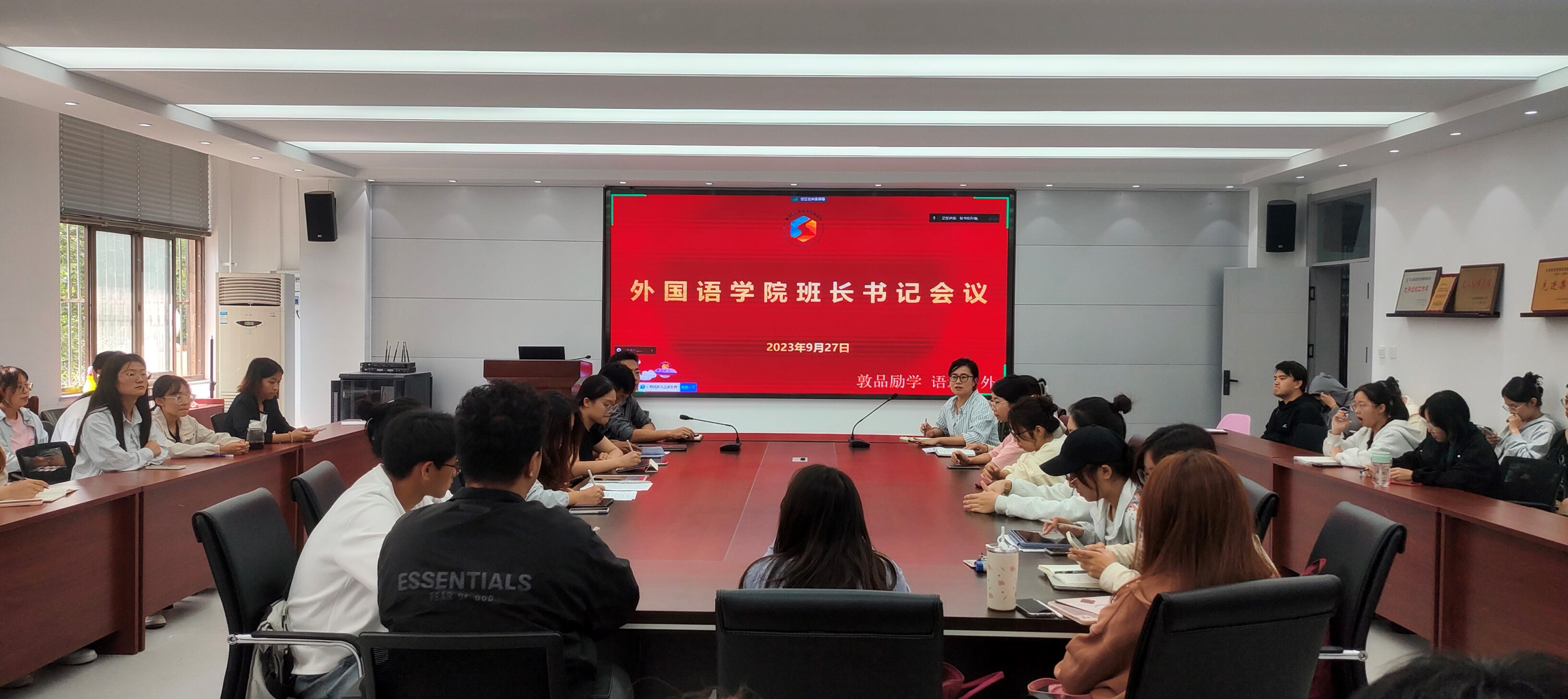9月27日,外国语学院于文经楼C220会议室召开安全主题教育会议,会议采取线上、线下相结合的方式进行。学院党委副书记副院长盛金玉、辅导员王洋洋、张玉灵、全体班长书记、学生会和学生服务中心部门负责人参加,会议由团委书记线郁主持。