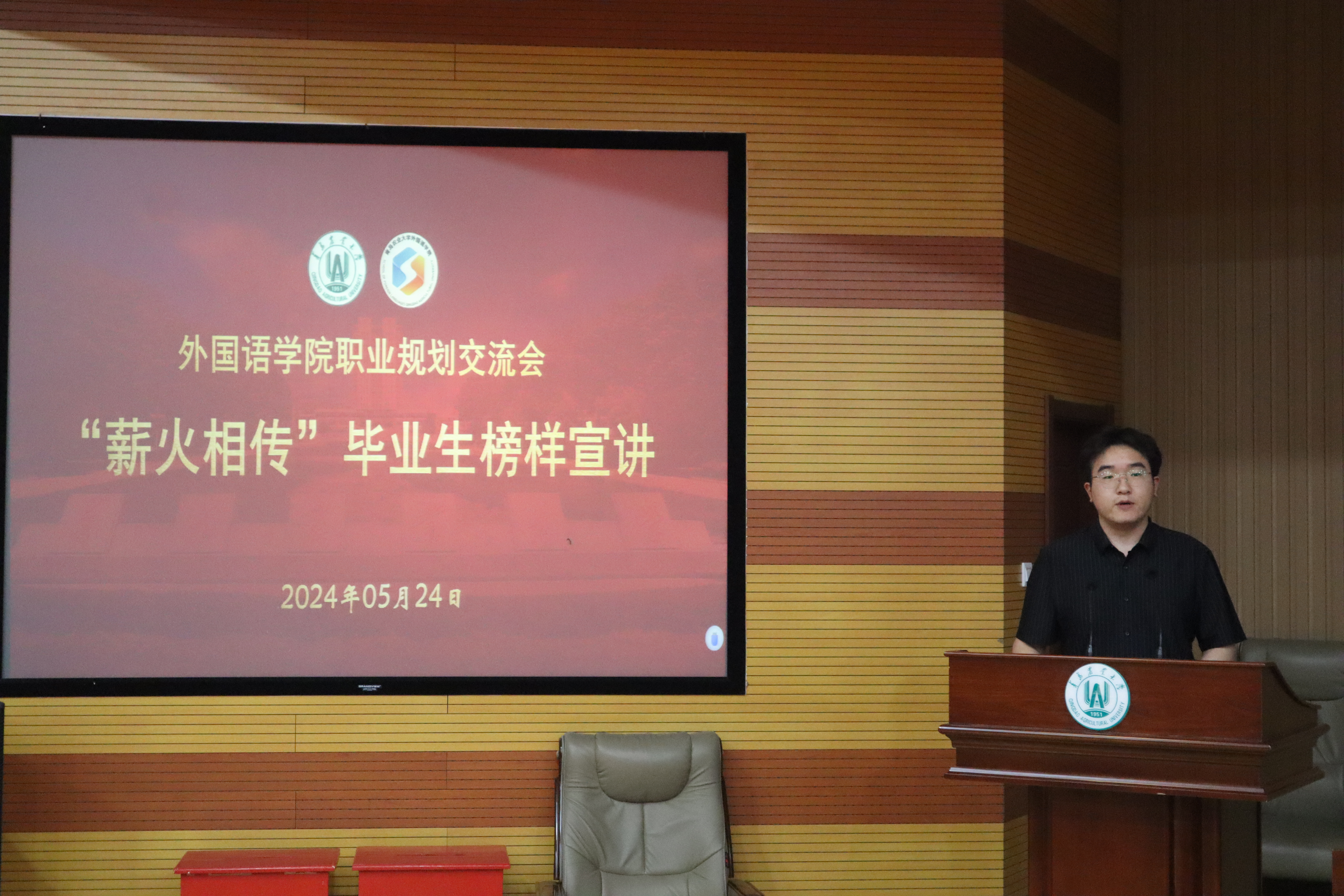 5月24日,sunbet申搏官方网站外国语学院于学术会馆第一报告厅举办职业规划交流会。活动邀请外国语学院团委书记线郁作职业规划专题讲座,邀请学院优秀毕业生王岩、周定威就自身就业经历分享经验。