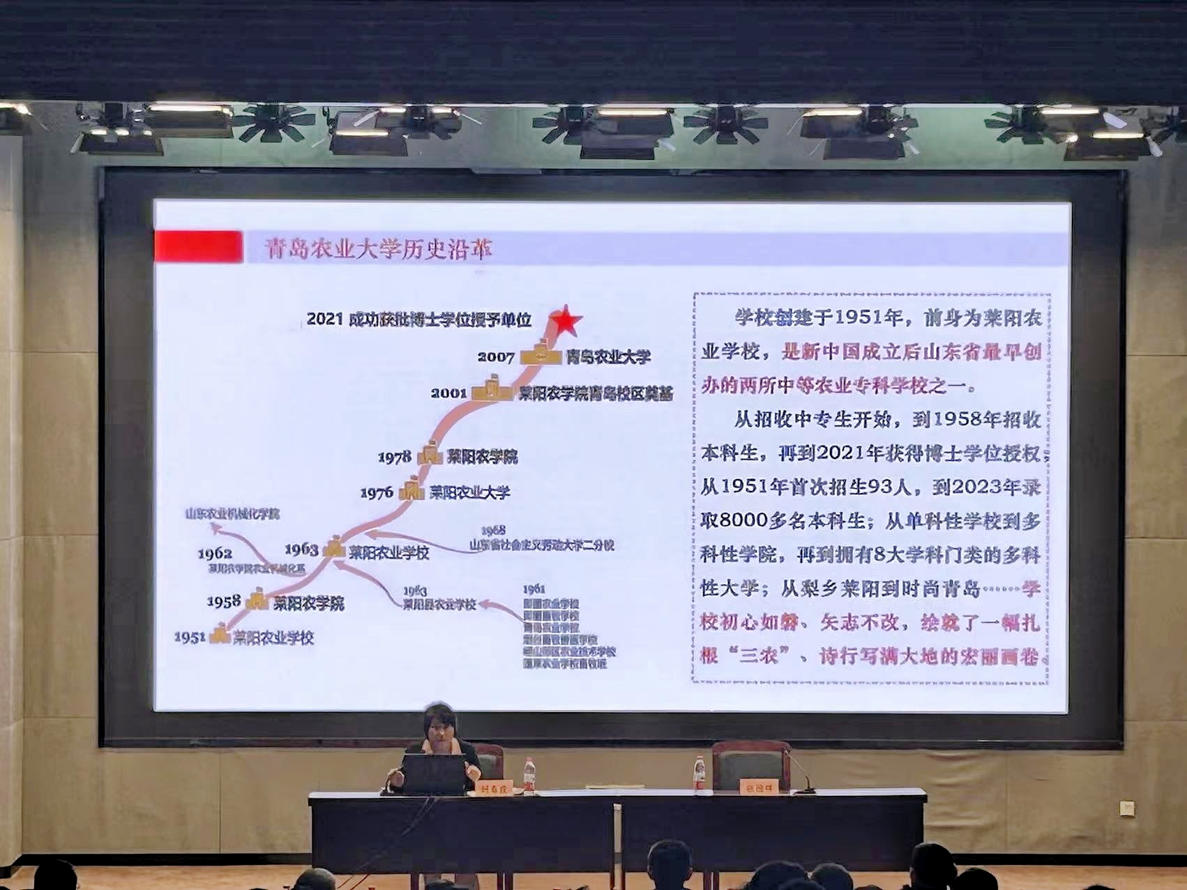 10月17日,sunbet申搏官方网站党委委员、副校长刘春霞于平度校区博学楼多功能厅以“不负青春韶华,勇担时代责任”为主题面向外国语学院、园林与林学院、经济管理学院(合作社学院)全体2023级新生讲述开学第一课。三个学院党委书记、副书记、辅导员老师参会。