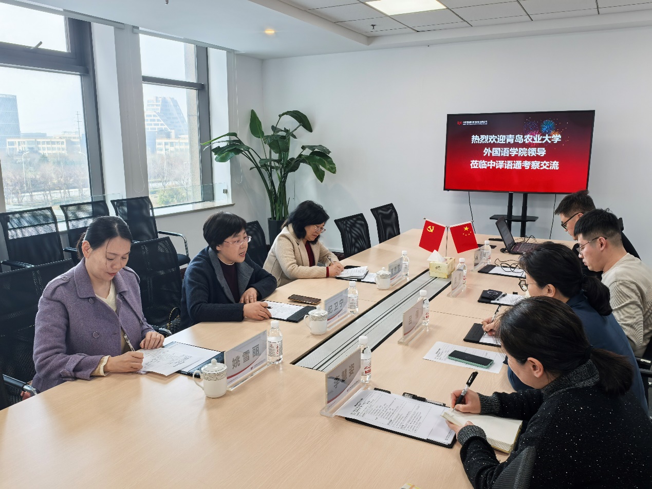 3月10日,外国语学院院长纪卫宁、副院长高秀雪、学院MTI中心主任姚雪丽赴中译语通科技(青岛)有限公司开展实地考察与交流活动。本次活动旨在进一步了解企业对外语人才的需求情况,探讨共建联合实验室和创新平台,探索新形势下校企合作新模式。公司语言科技事业部总经理吕倩、副总监李慧姿、创新业务部副总监曲鹏、高级经理潘伟参加了座谈。