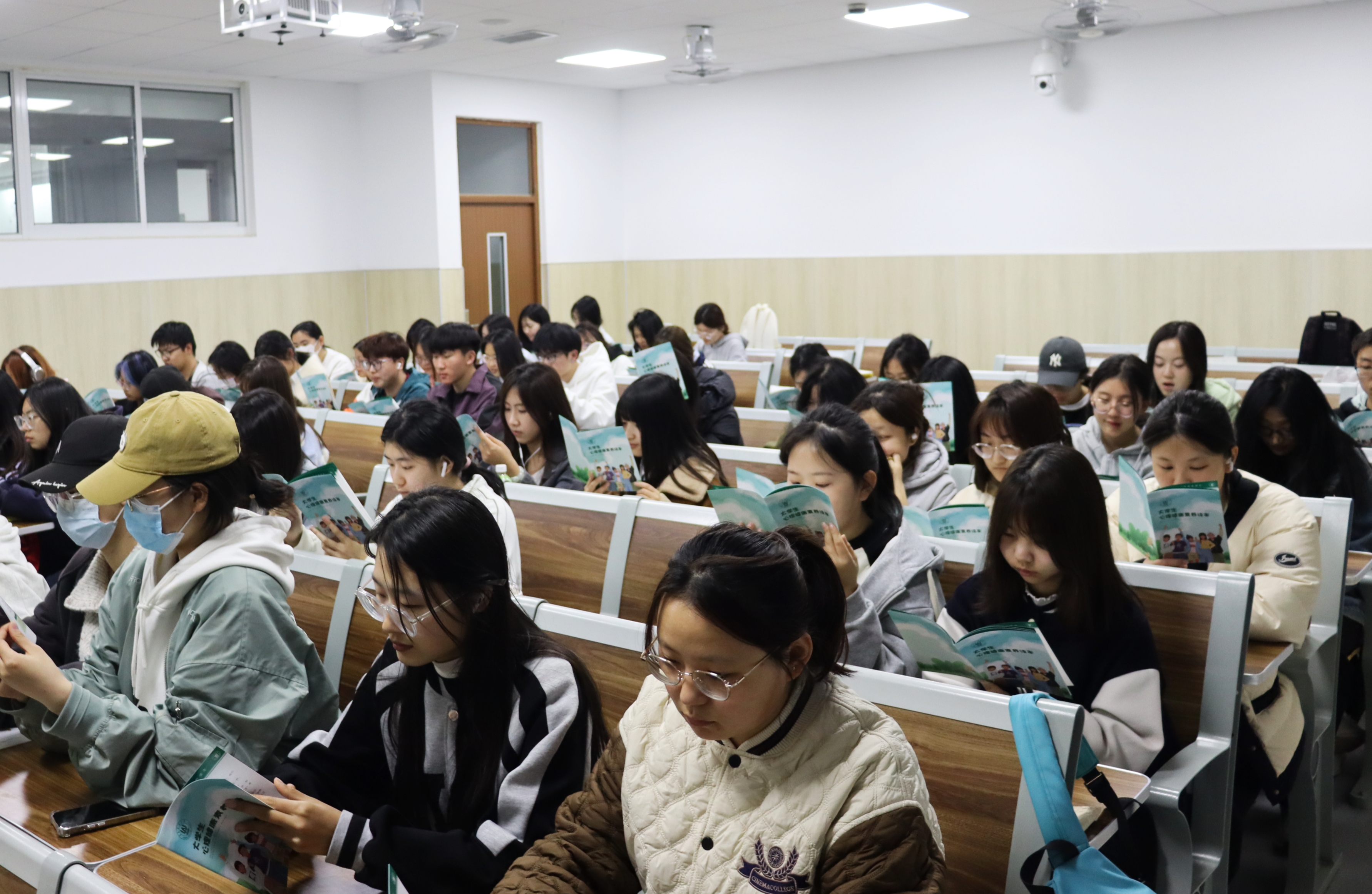 学院通过主题班会、宿舍阅读等形式进行《大学生心理健康素养读本》的学习,使学生直观地获取心理健康相关知识,加深对心理健康知识的理解。