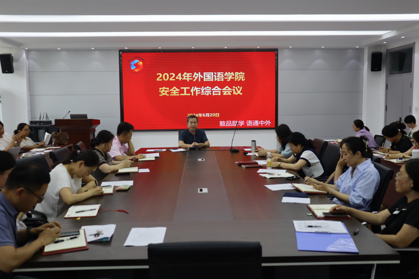 6月20日,外国语学院于文经楼C220召开安全工作综合会议,全面部署今后一个时期学院安全工作。会议由学院党委书记王效仿主持。
